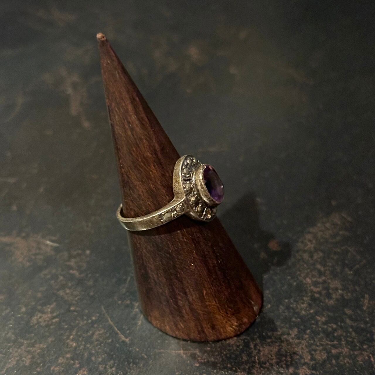 海外で買い付けた紫のストーンデザインのシルバーリングです。