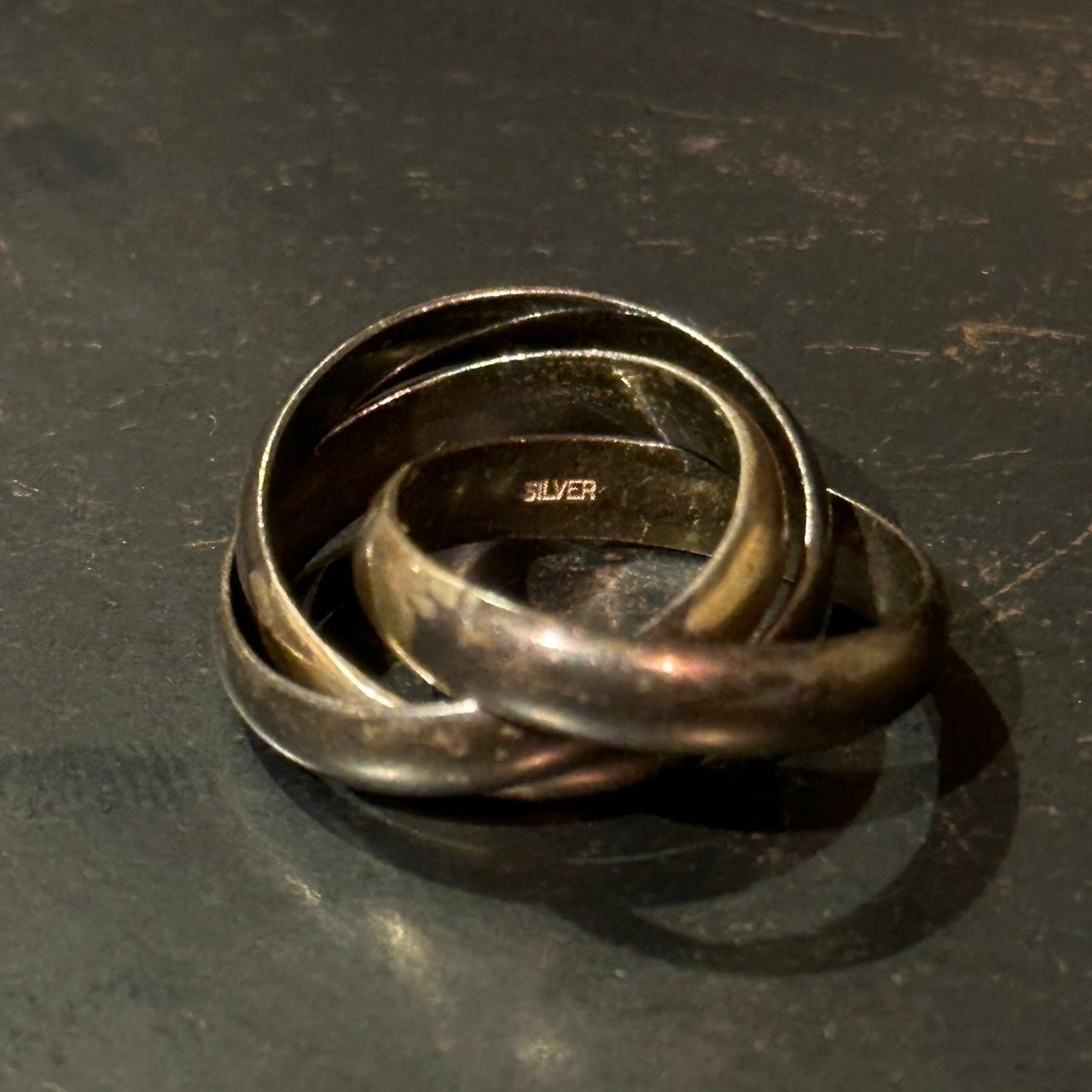 海外で買い付けた連結デザインのシルバーリングです。