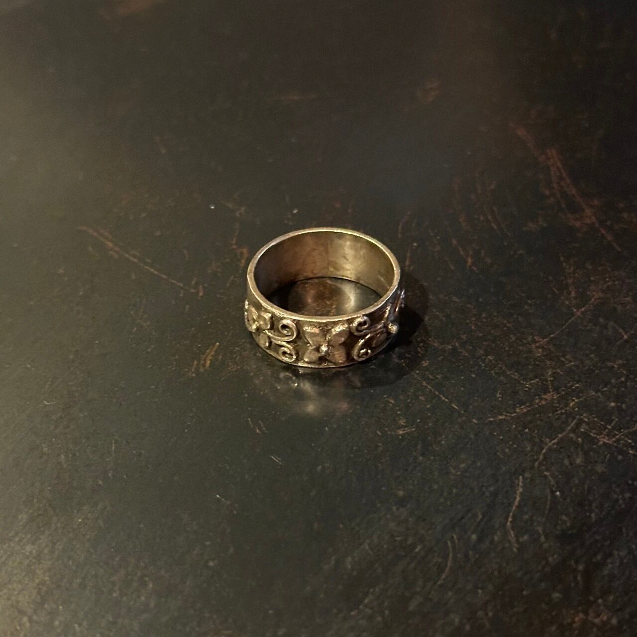 海外で買い付けたお花デザインのシルバーリングです。