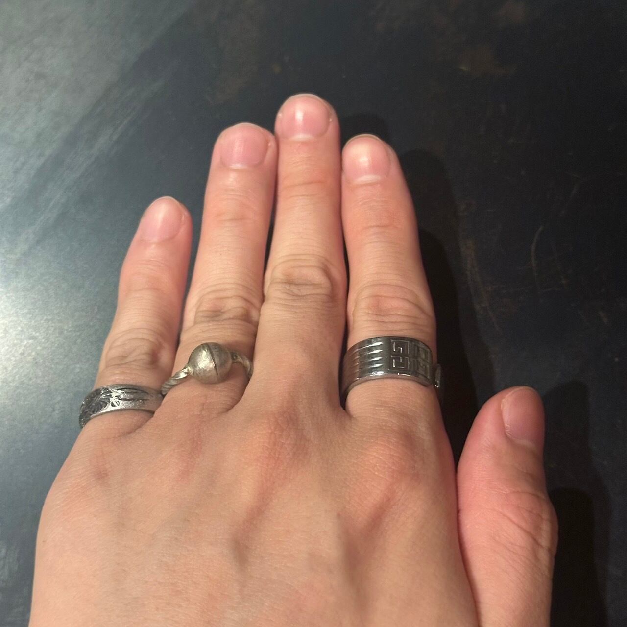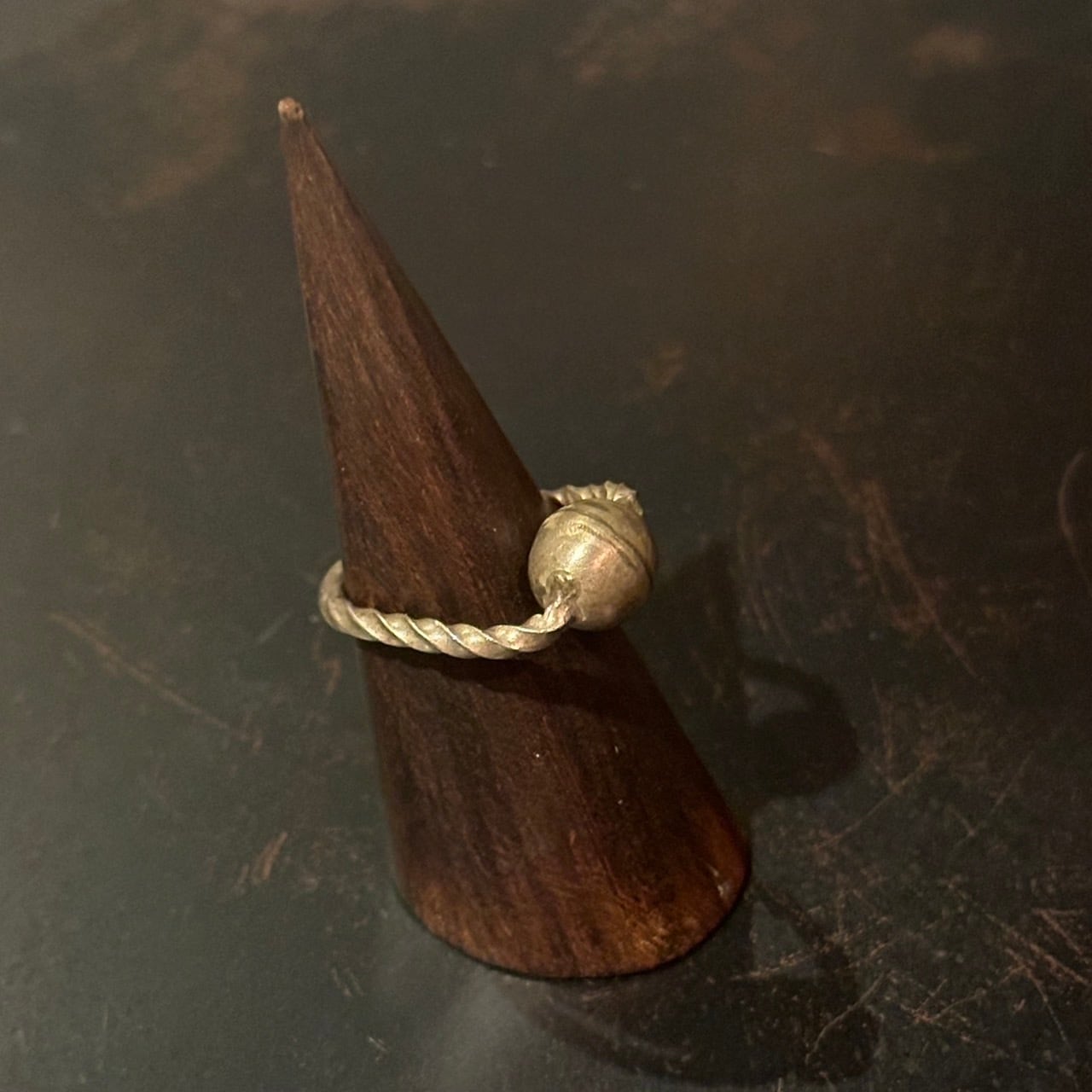 海外で買い付けた球体デザインのシルバーリングです。