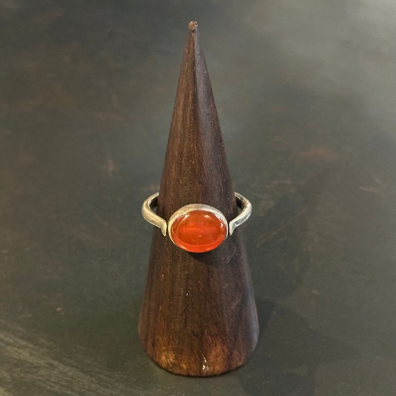 海外で買い付けた黒とオレンジの石デザインのシルバーリングです。