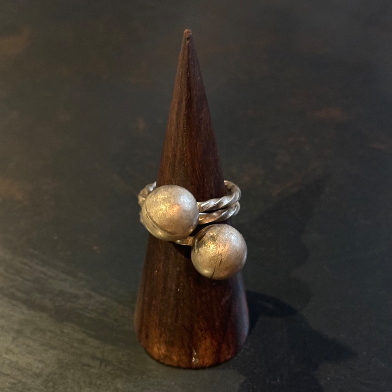 海外で買い付けたツイストパールデザインのシルバーリングです。