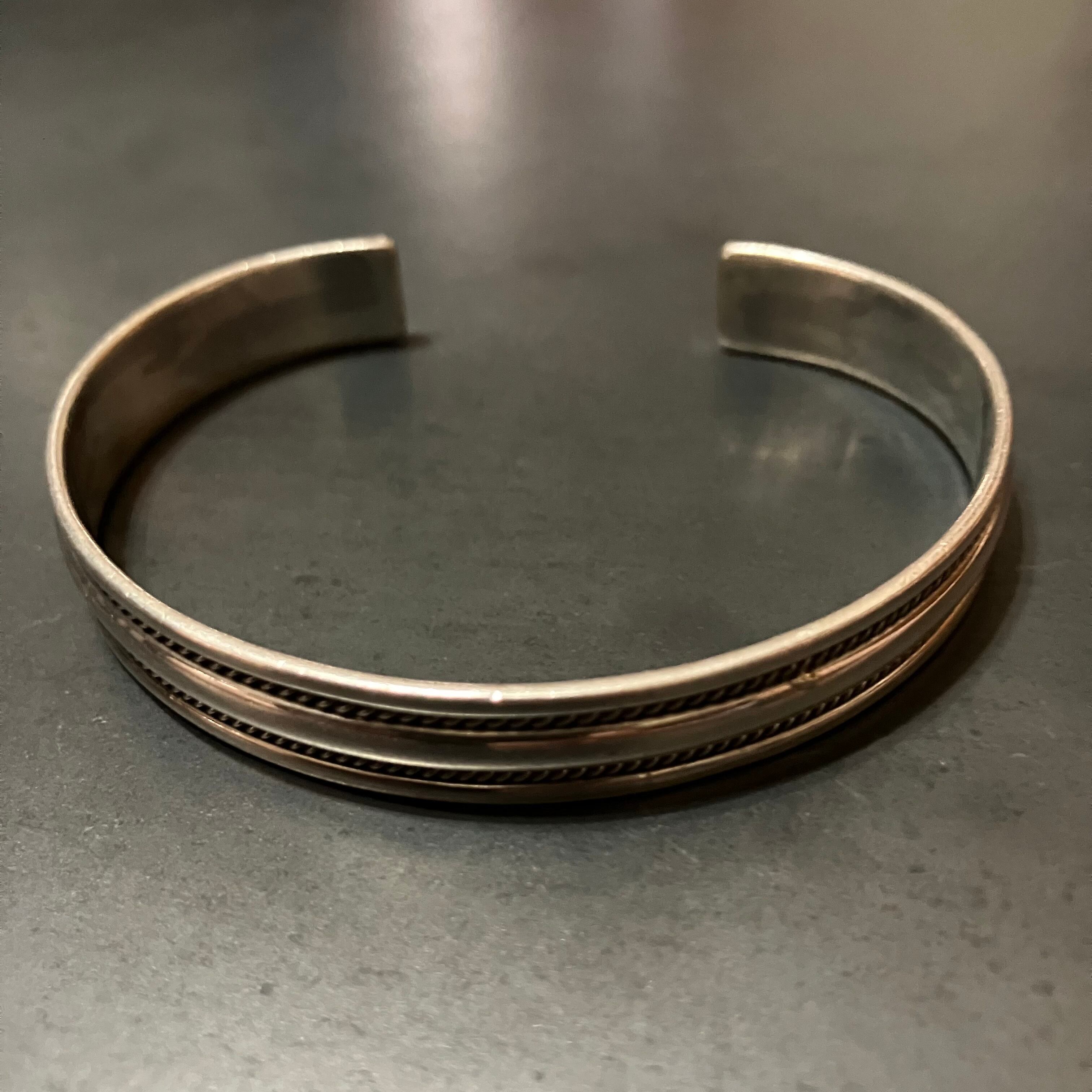 海外で買い付けたネイティブデザインシルバーバングルです。