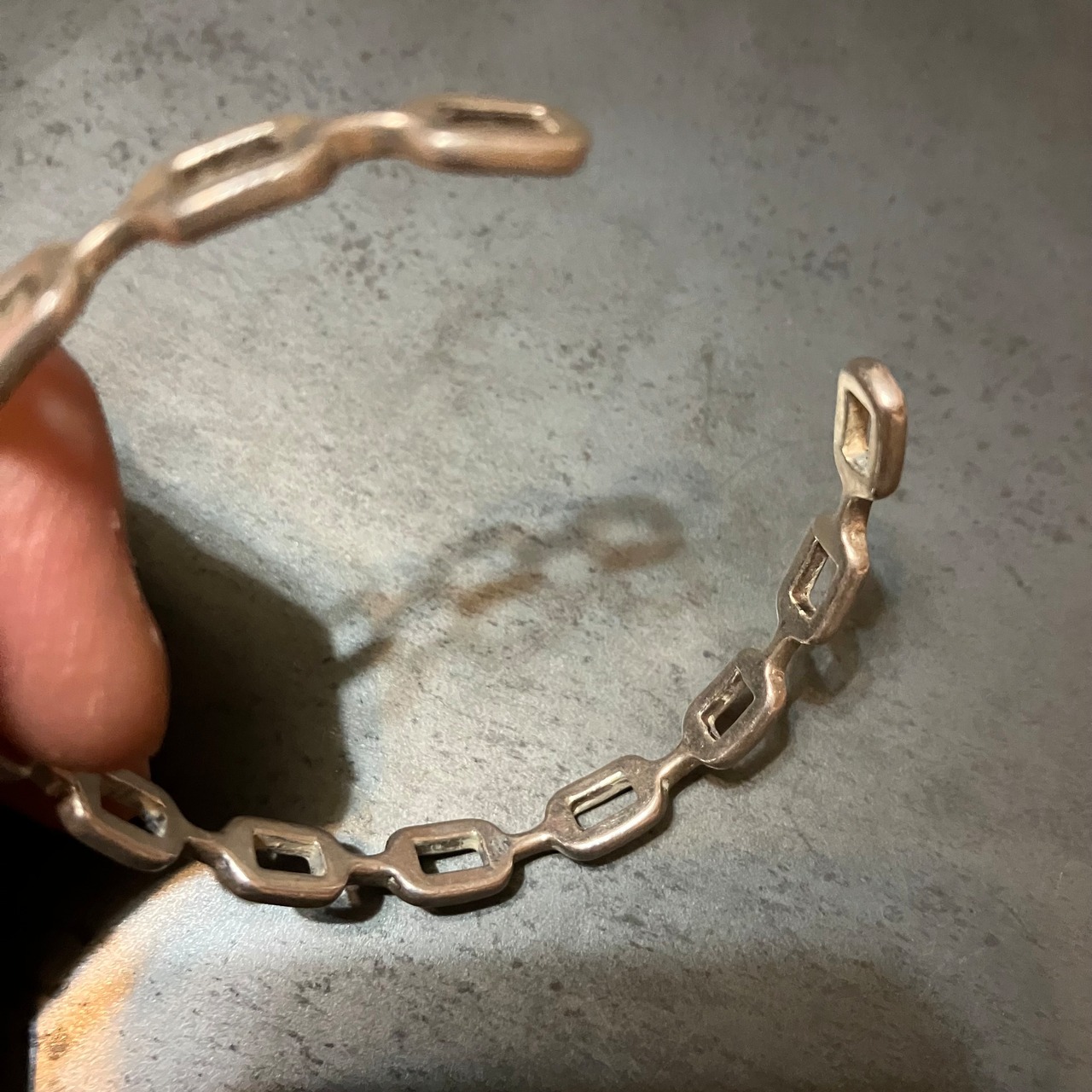 海外で買い付けたブロックデザインシルバーバングルです。