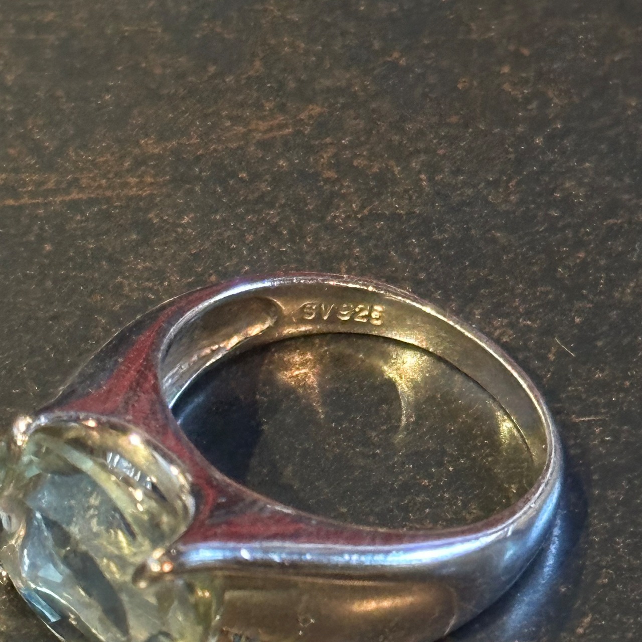 海外で買い付けた黄色ストーンデザインのシルバーリングです。