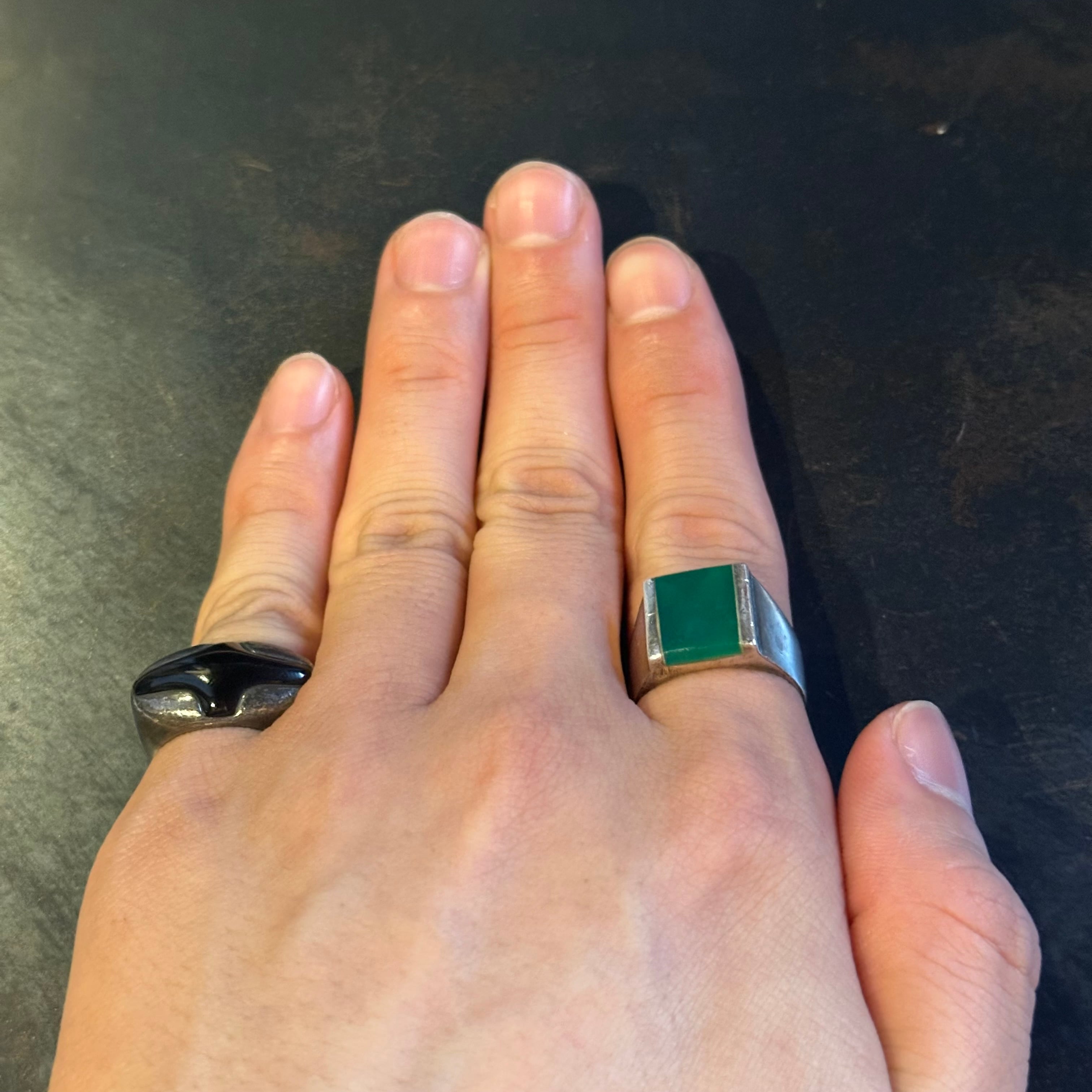 海外で買い付けたオニキスデザインのシルバーリングです。