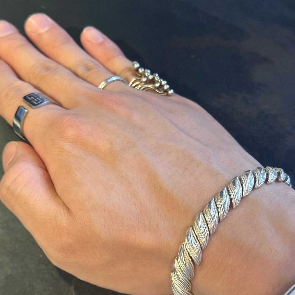 海外で買い付けたリーフデザインのシルバー925ブレスレットです。