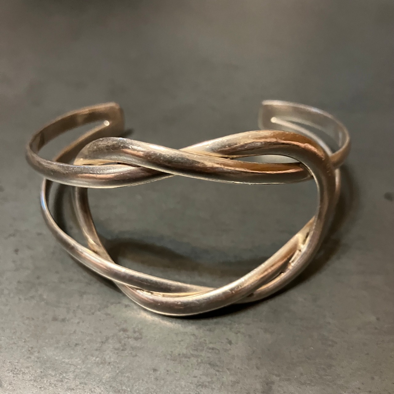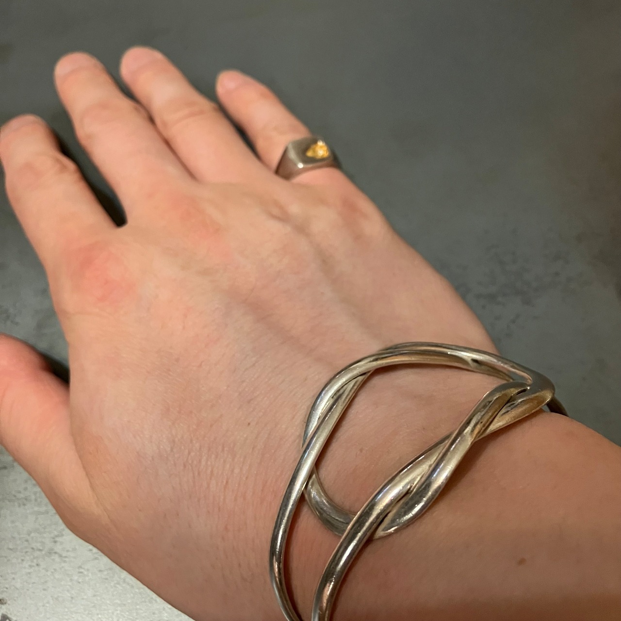 海外で買い付けたビッグサイズのノットデザインシルバーバングルです。