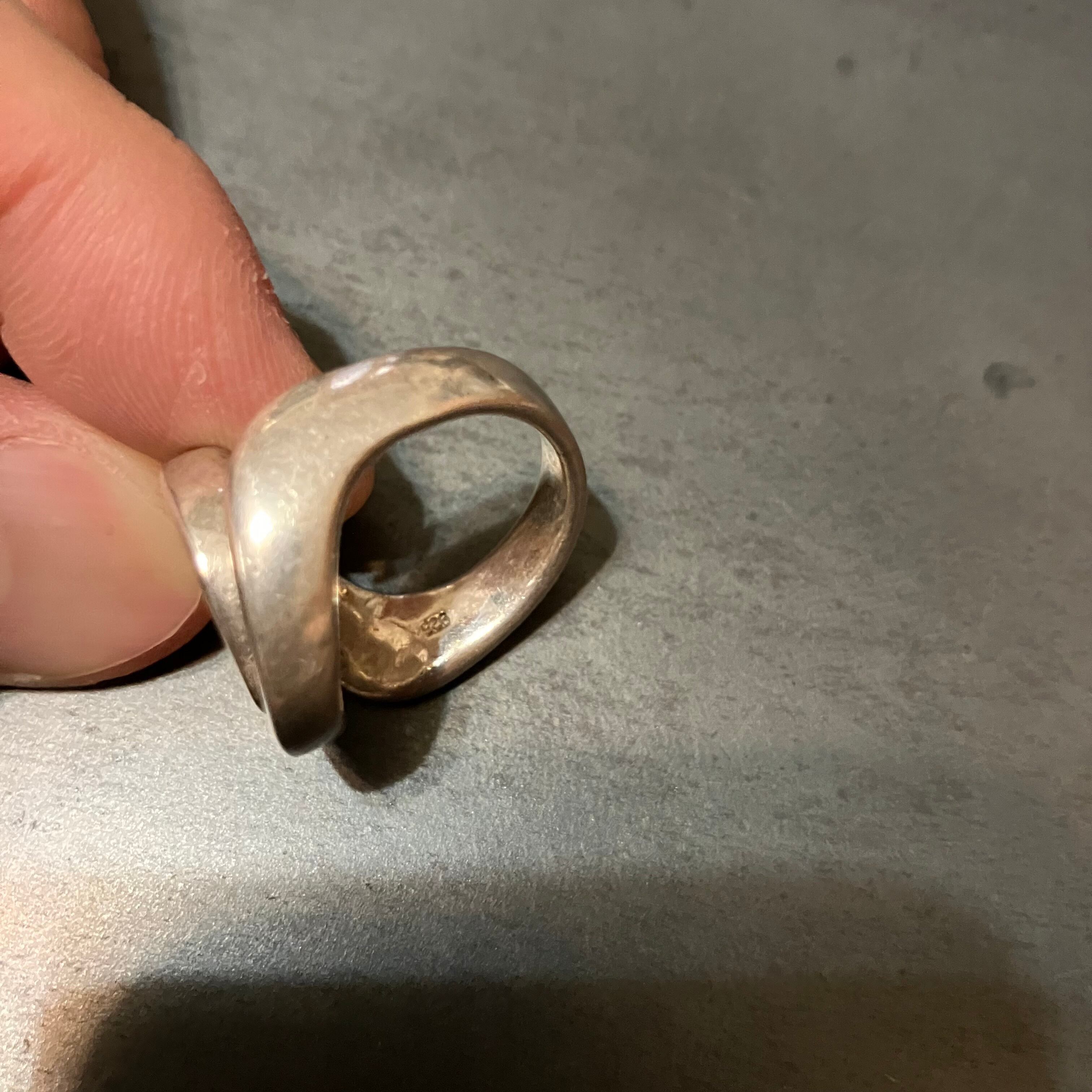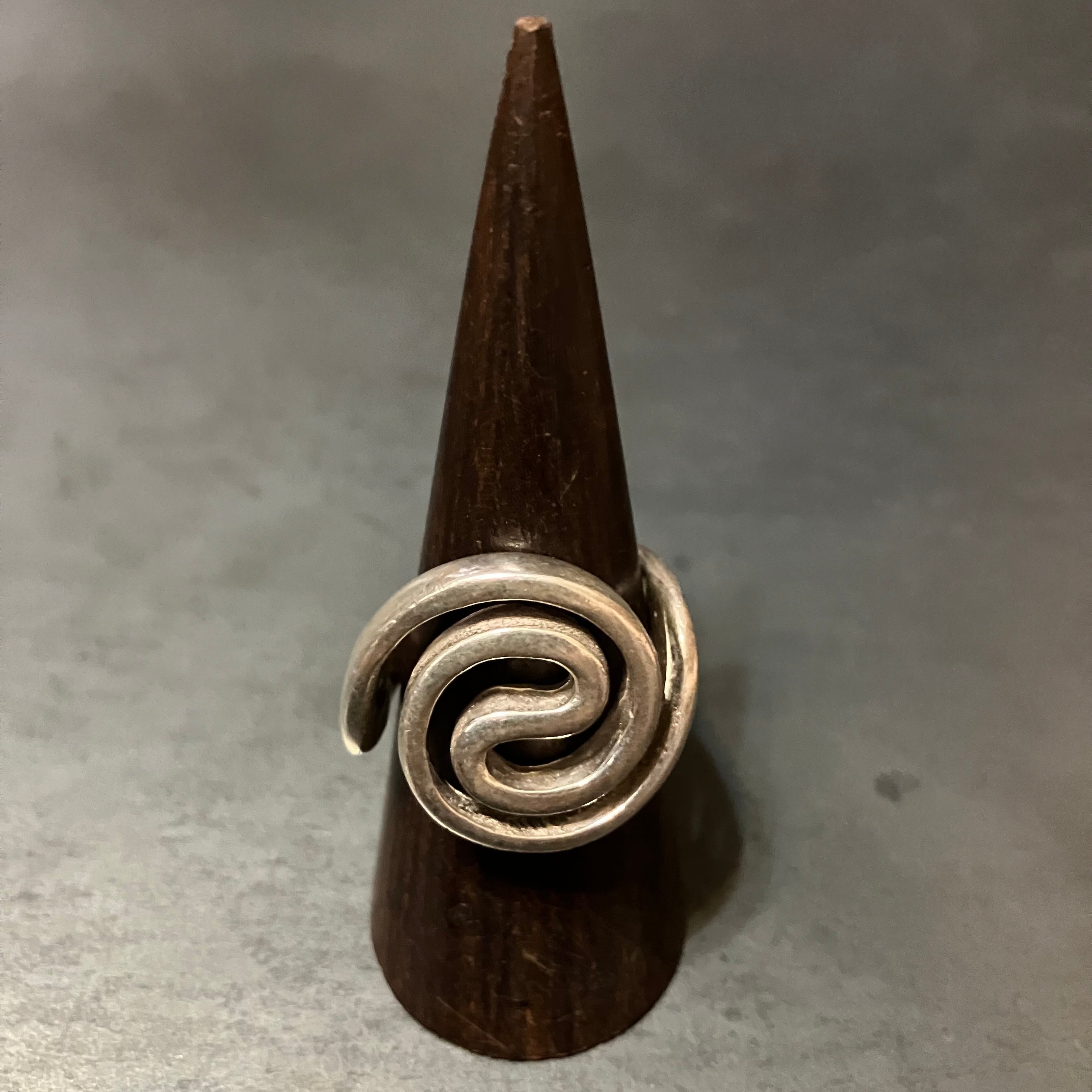 海外で買い付けた渦巻きデザインのシルバーリングです。