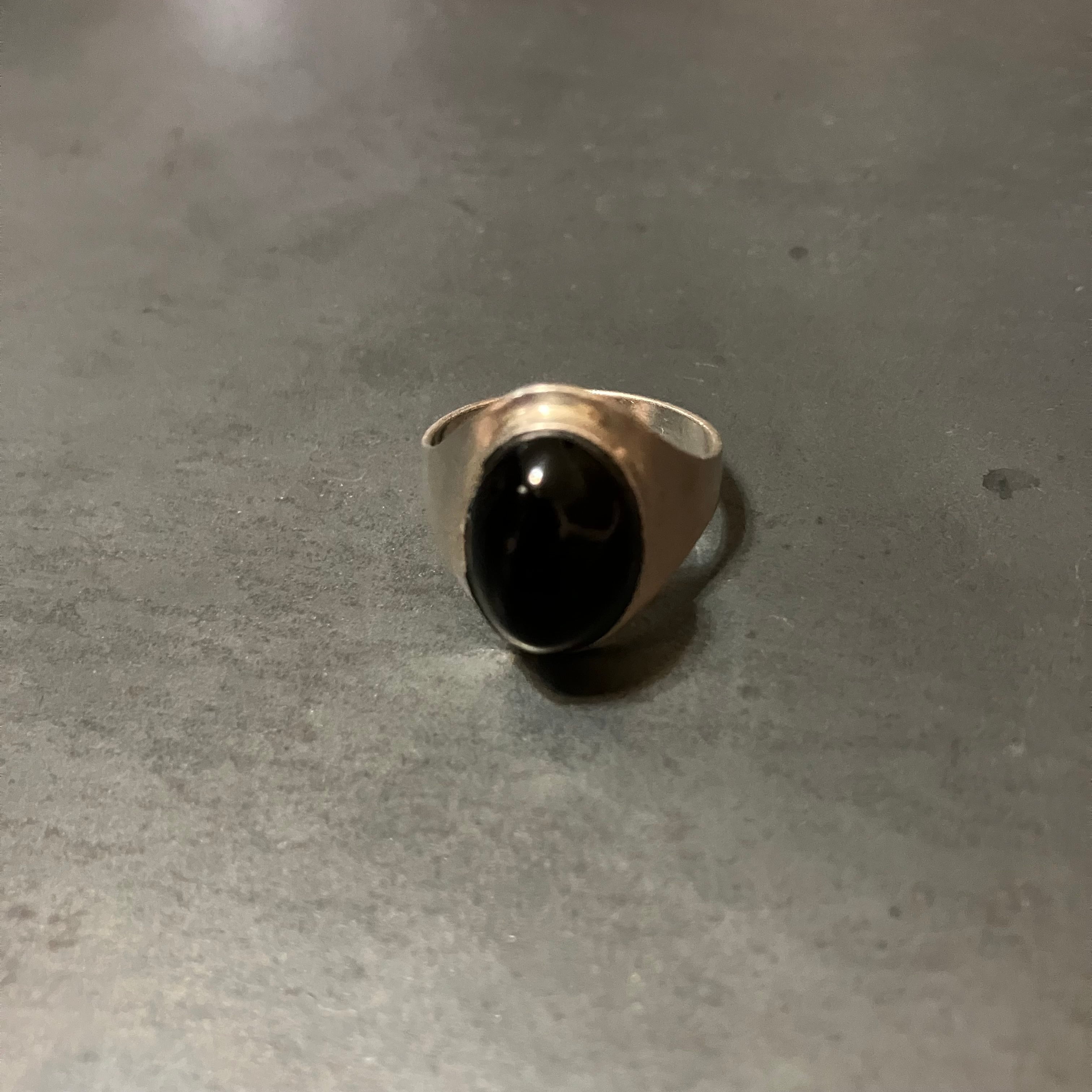 海外で買い付けたオニキスデザインのシルバーリングです。