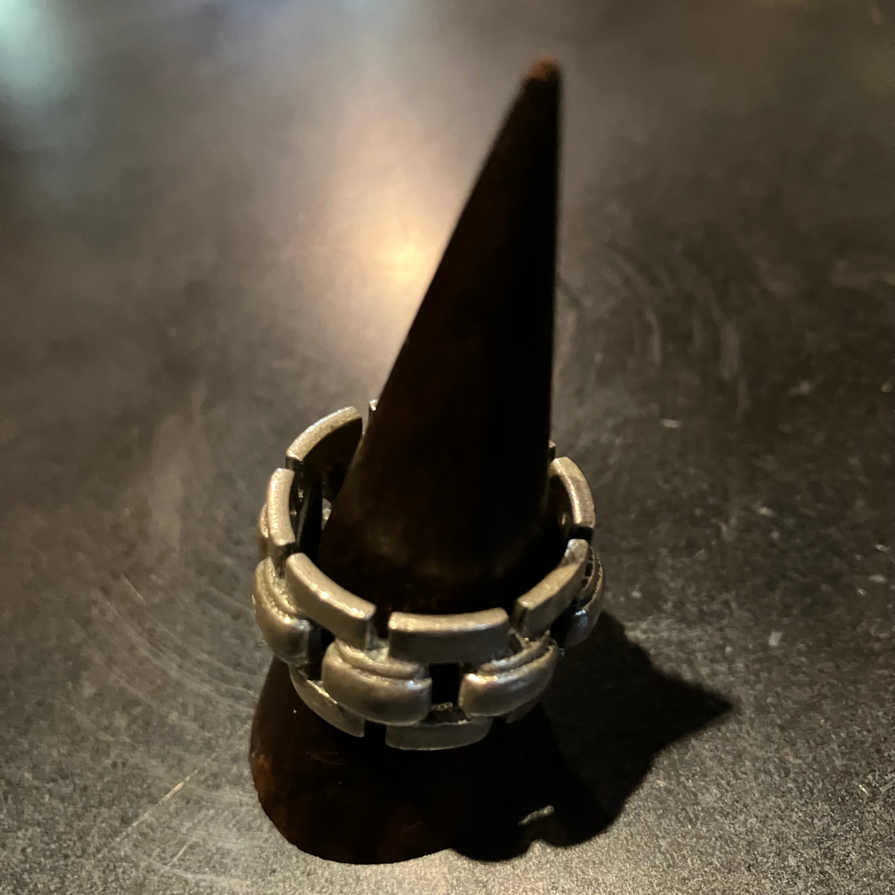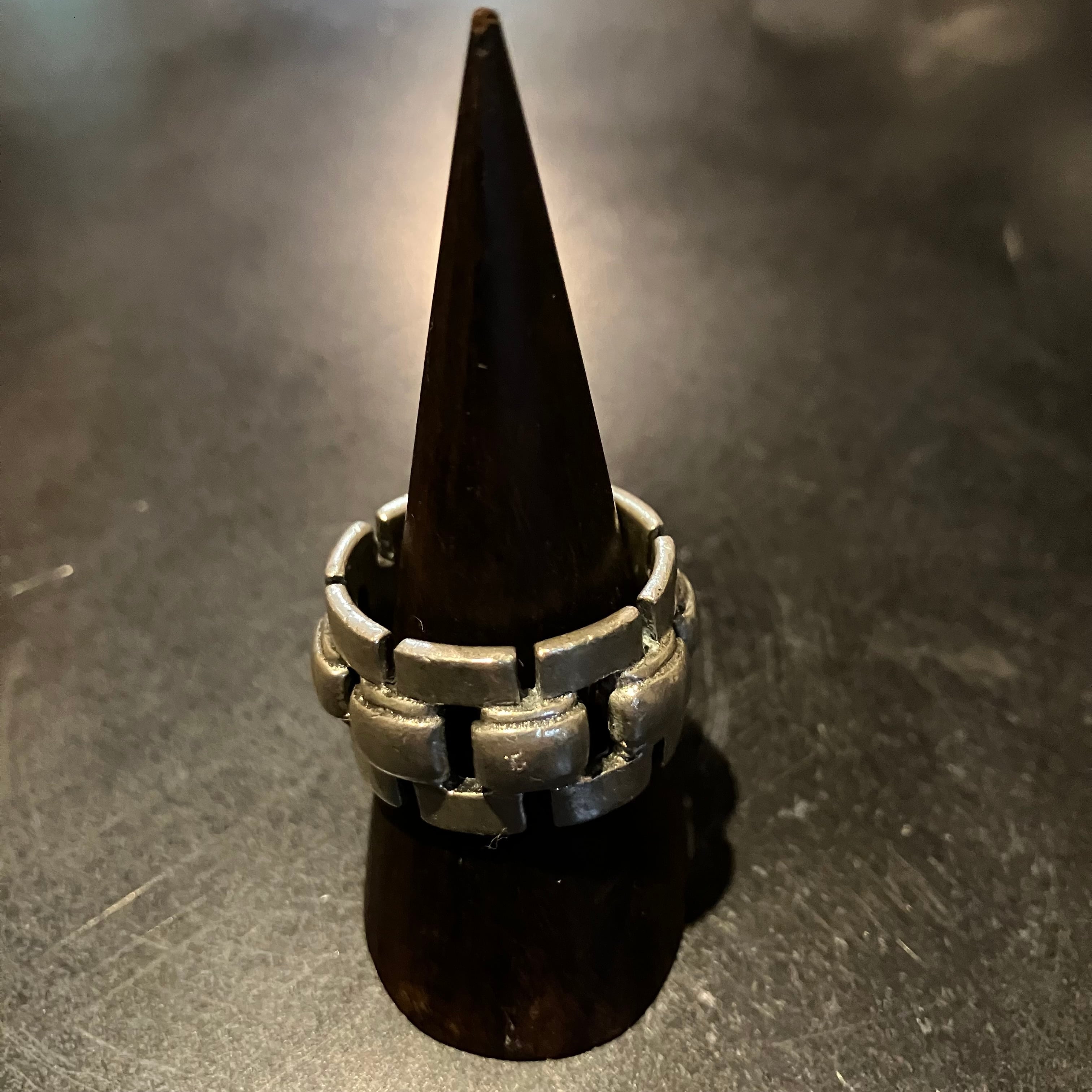 海外で買い付けたスクエアモチーフのシルバービッグリングです。