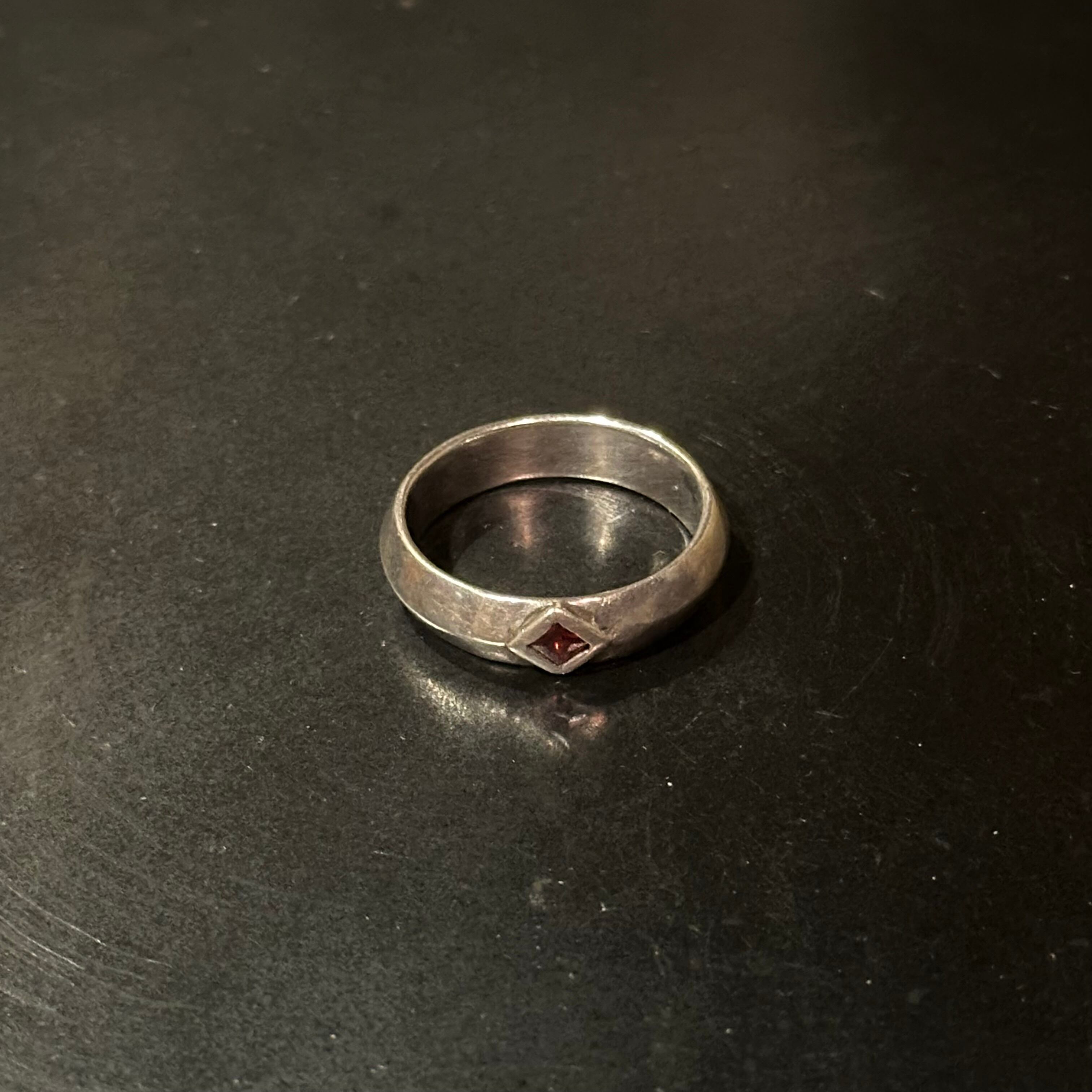海外で買い付けた赤ストーンデザインのシルバーリングです。