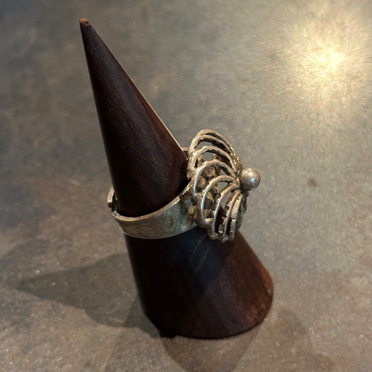 海外で買い付けた螺旋デザインのシルバーリングです。