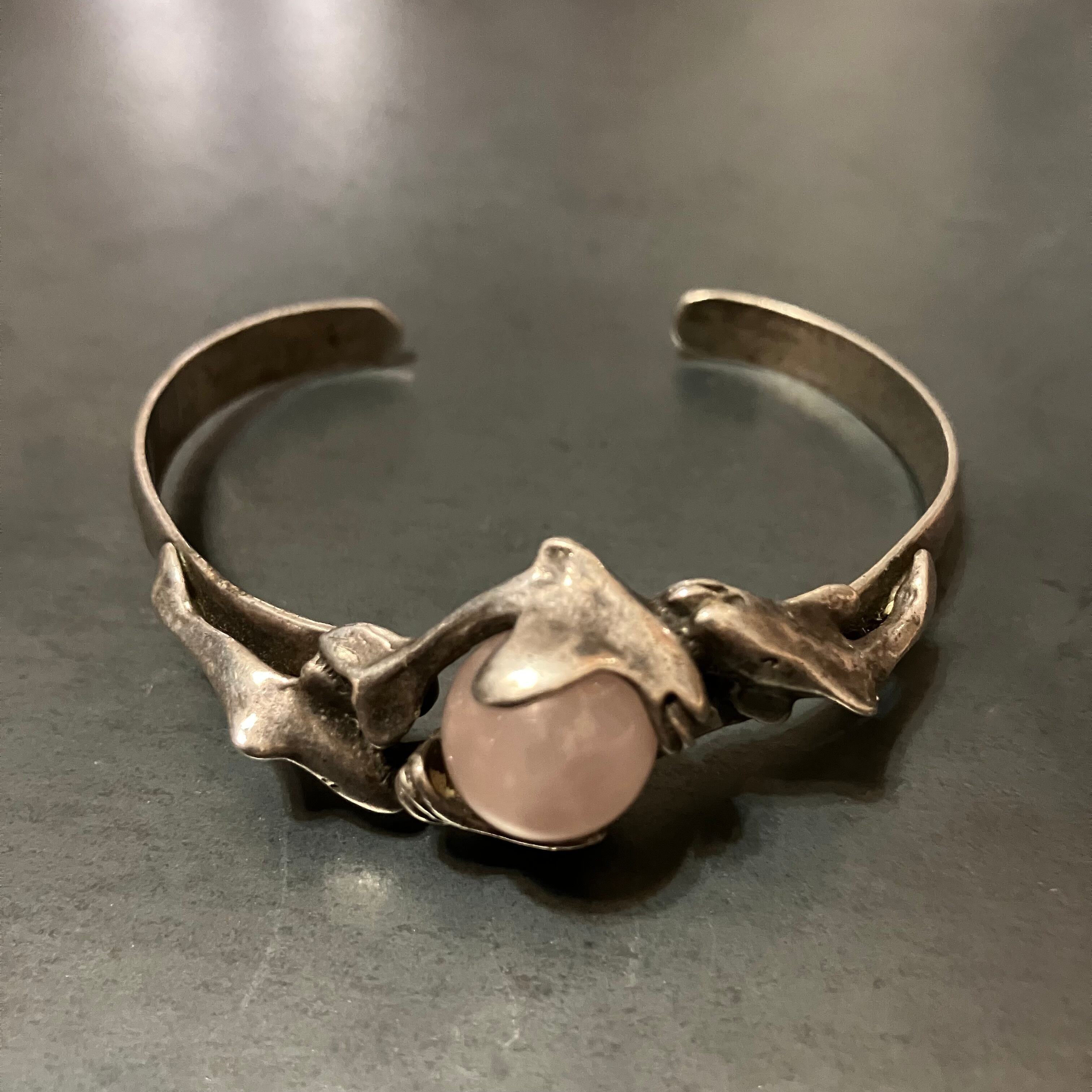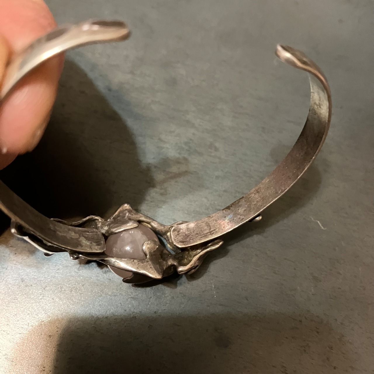 海外で買い付けたストーンデザインのシルバーバングルです。