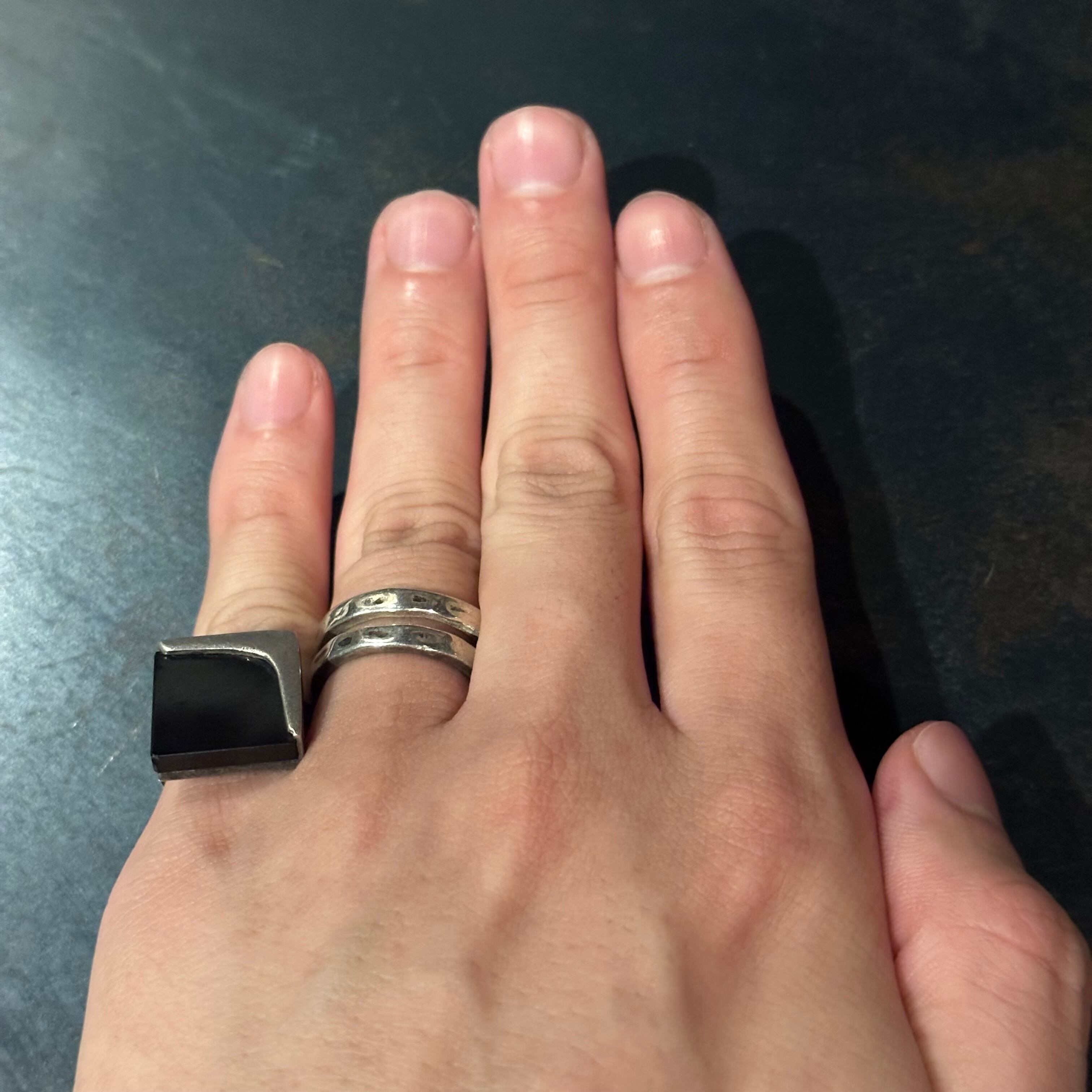 海外で買い付けたオニキスデザインのシルバーリングです。