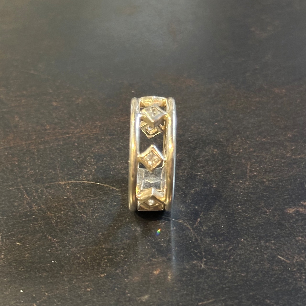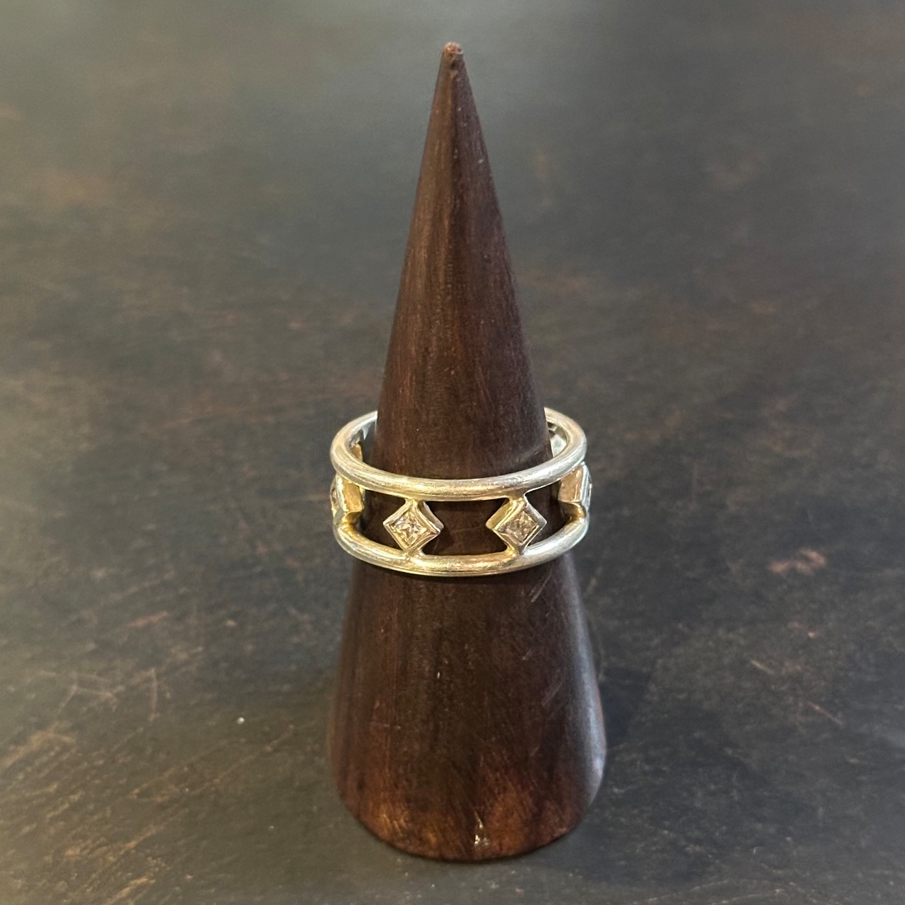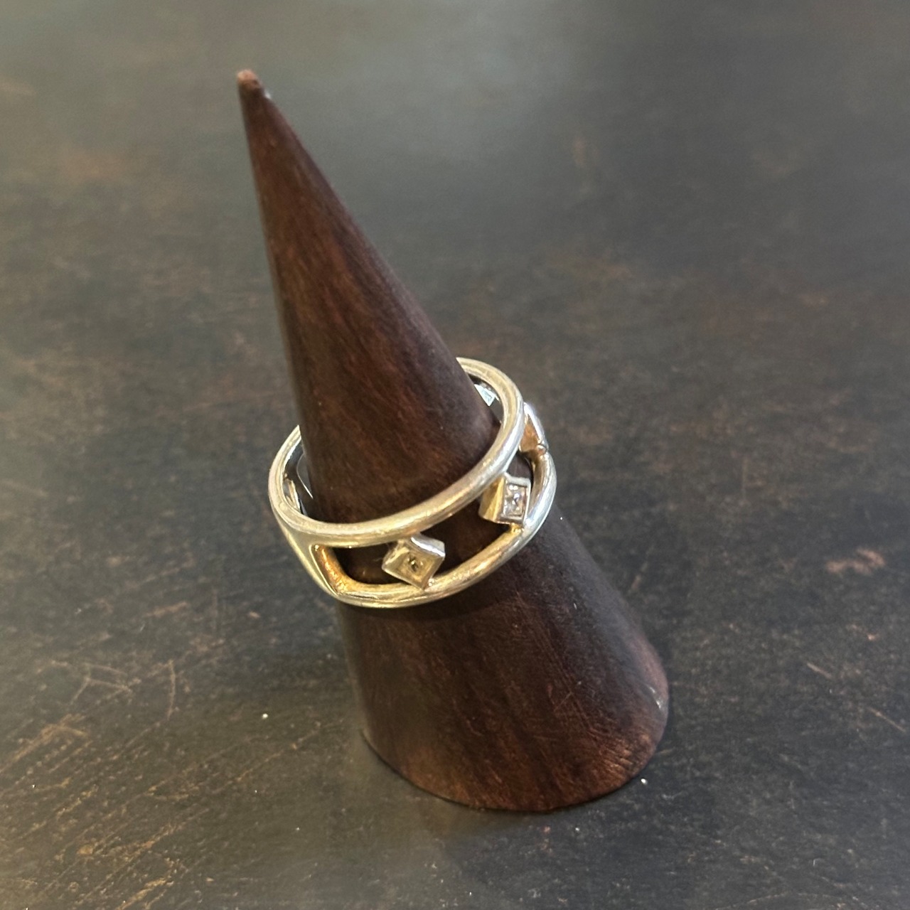 海外で買い付けたひし形デザインのシルバーリングです。