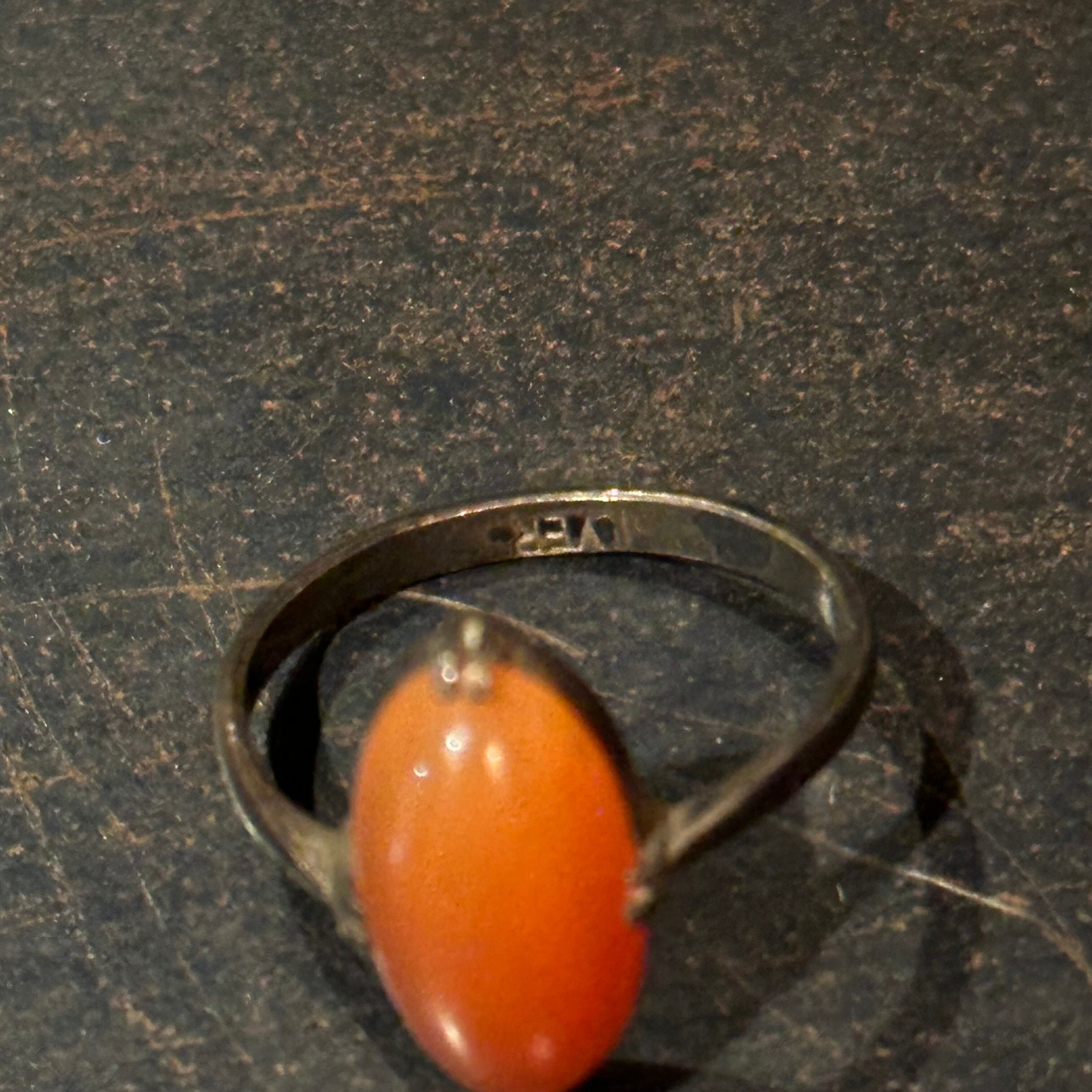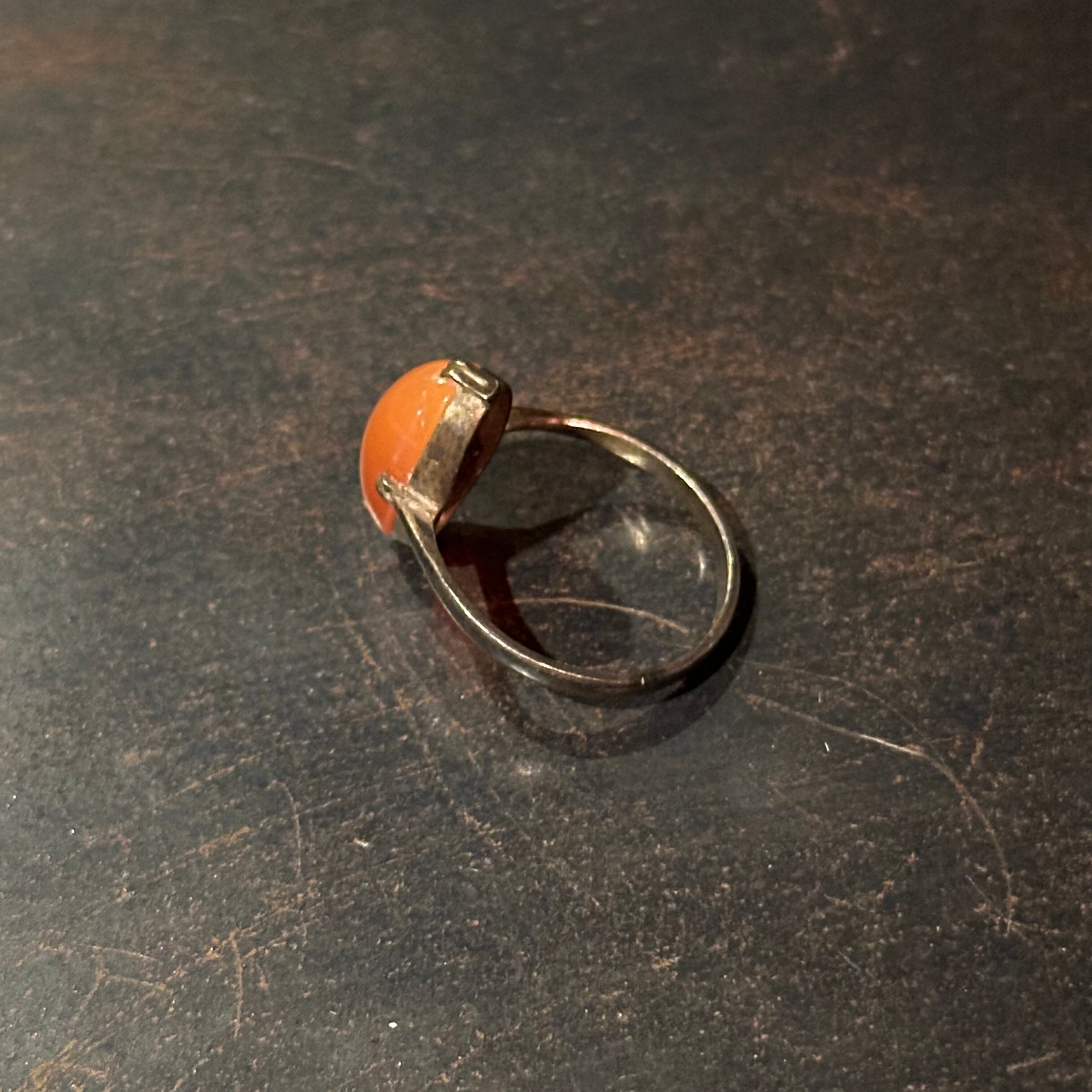 海外で買い付けたオレンジ石デザインのシルバーリングです。