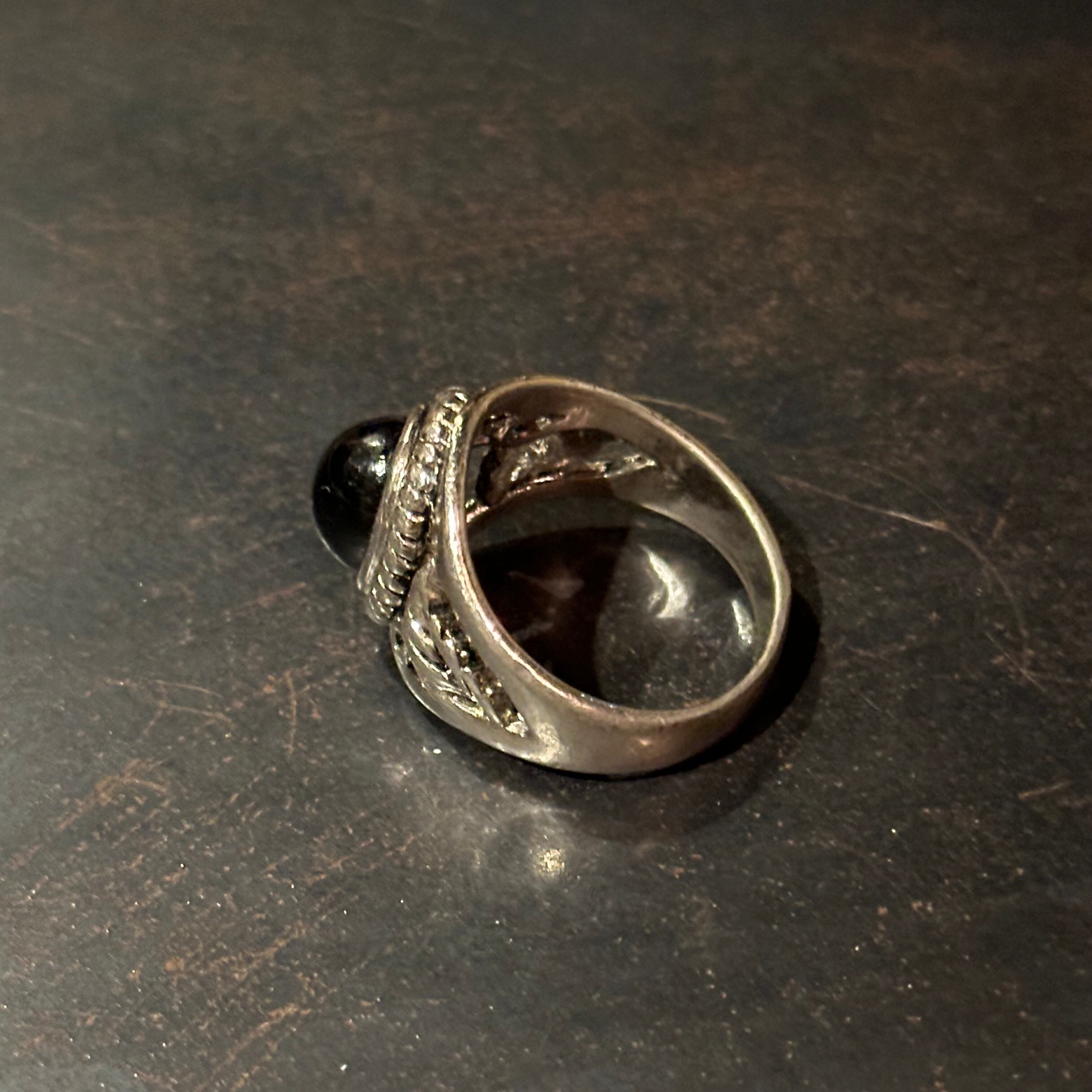 海外で買い付けたオニキスデザインのシルバーリングです。