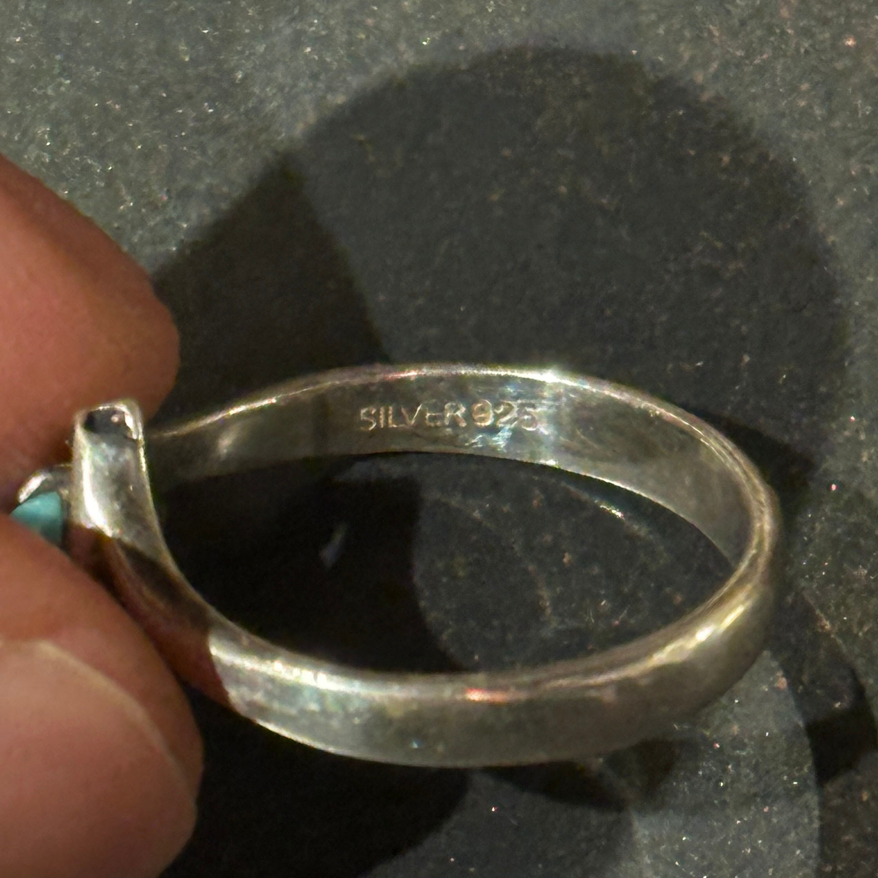海外で買い付けたターコイズデザインのシルバーリングです。