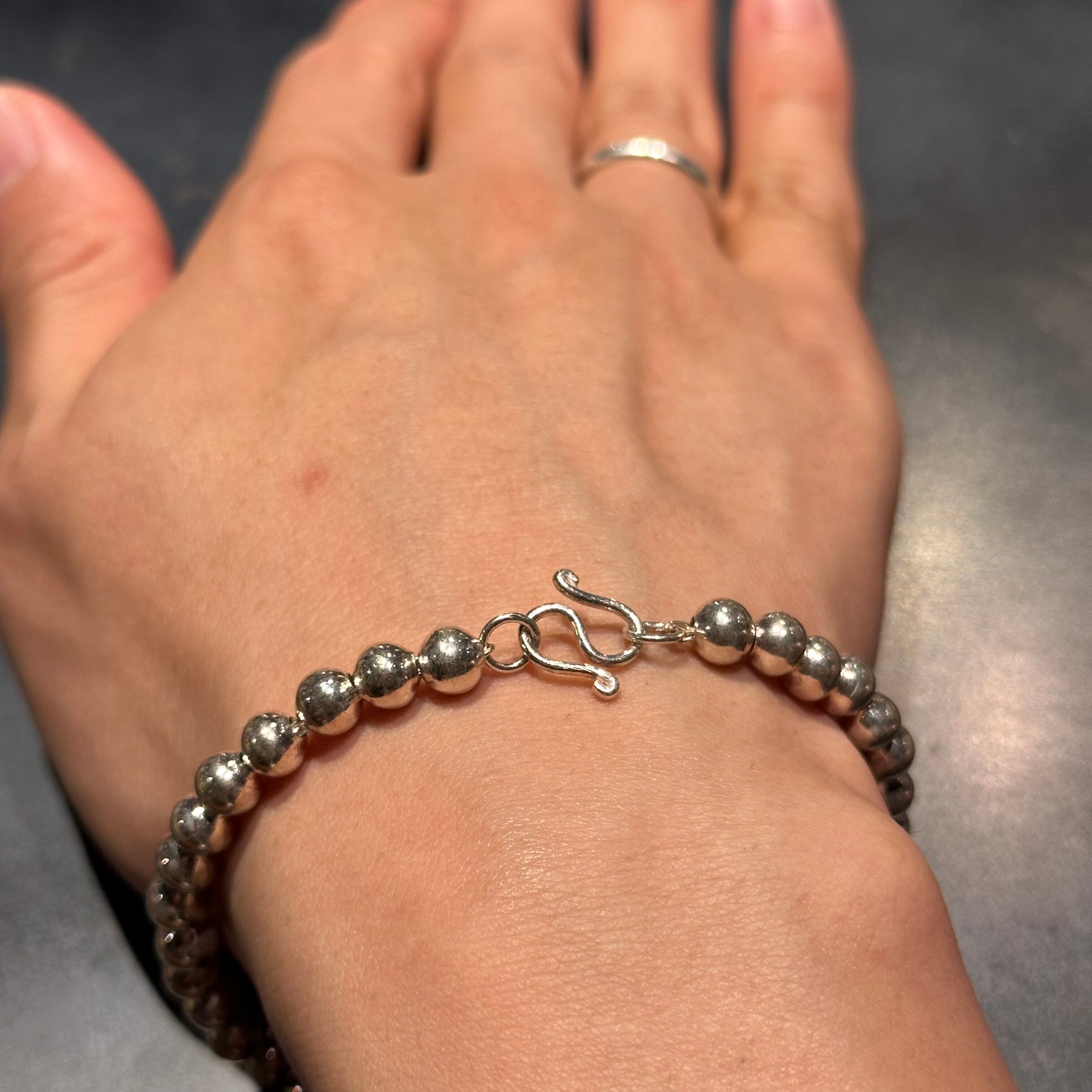 海外で買い付けたパールデザインのシルバーバングルです。