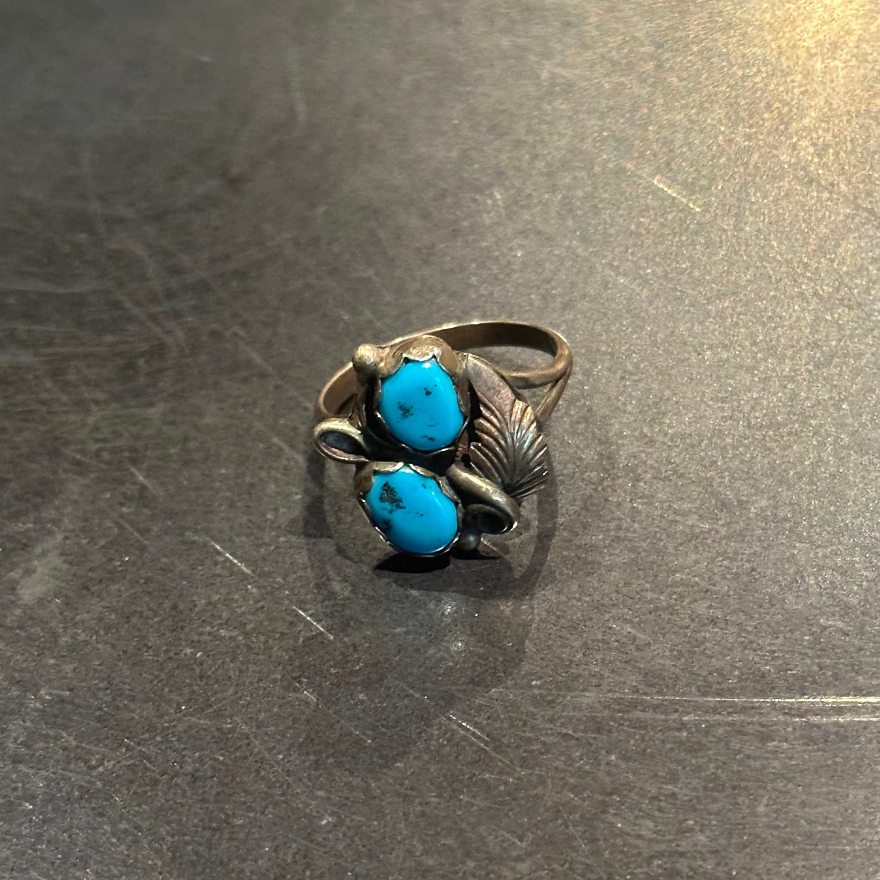 SILVER925 DOUBLE TURQUOISE DESIGN RING/シルバー/リング