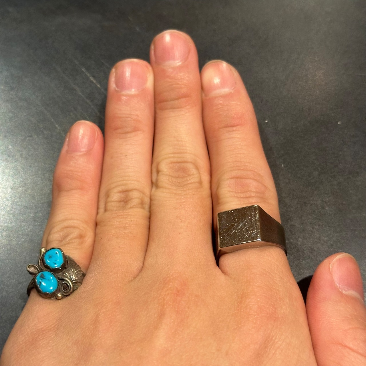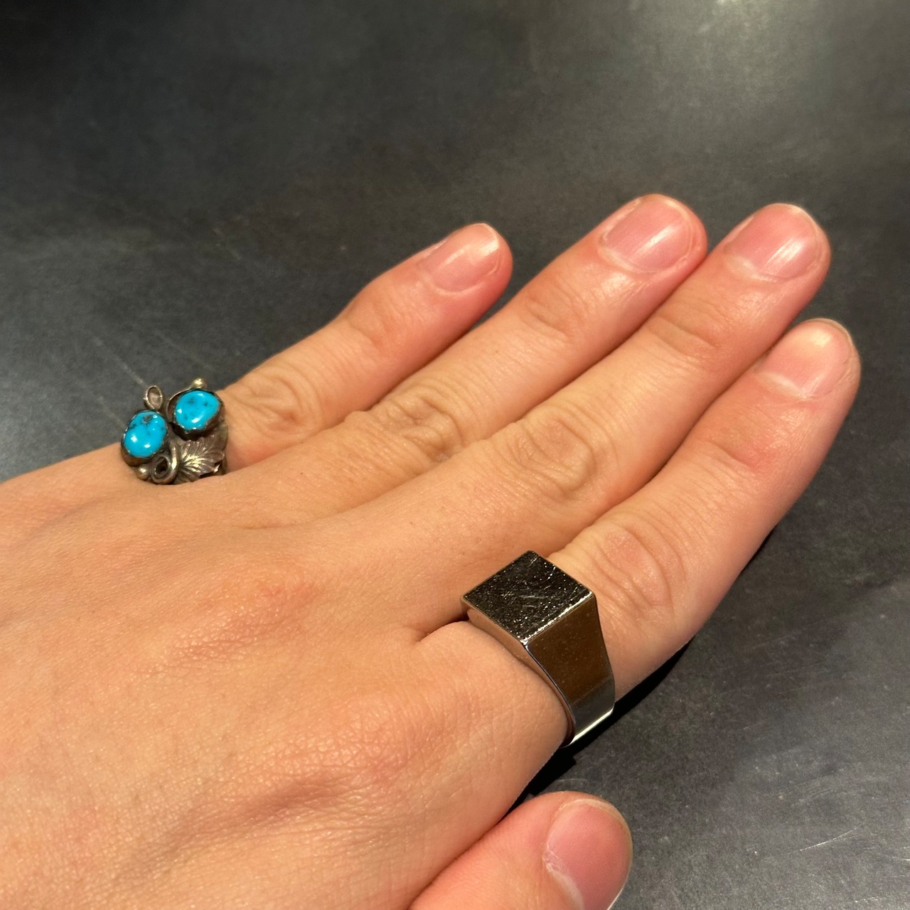海外で買い付けたターコイズデザインのシルバーリングです。