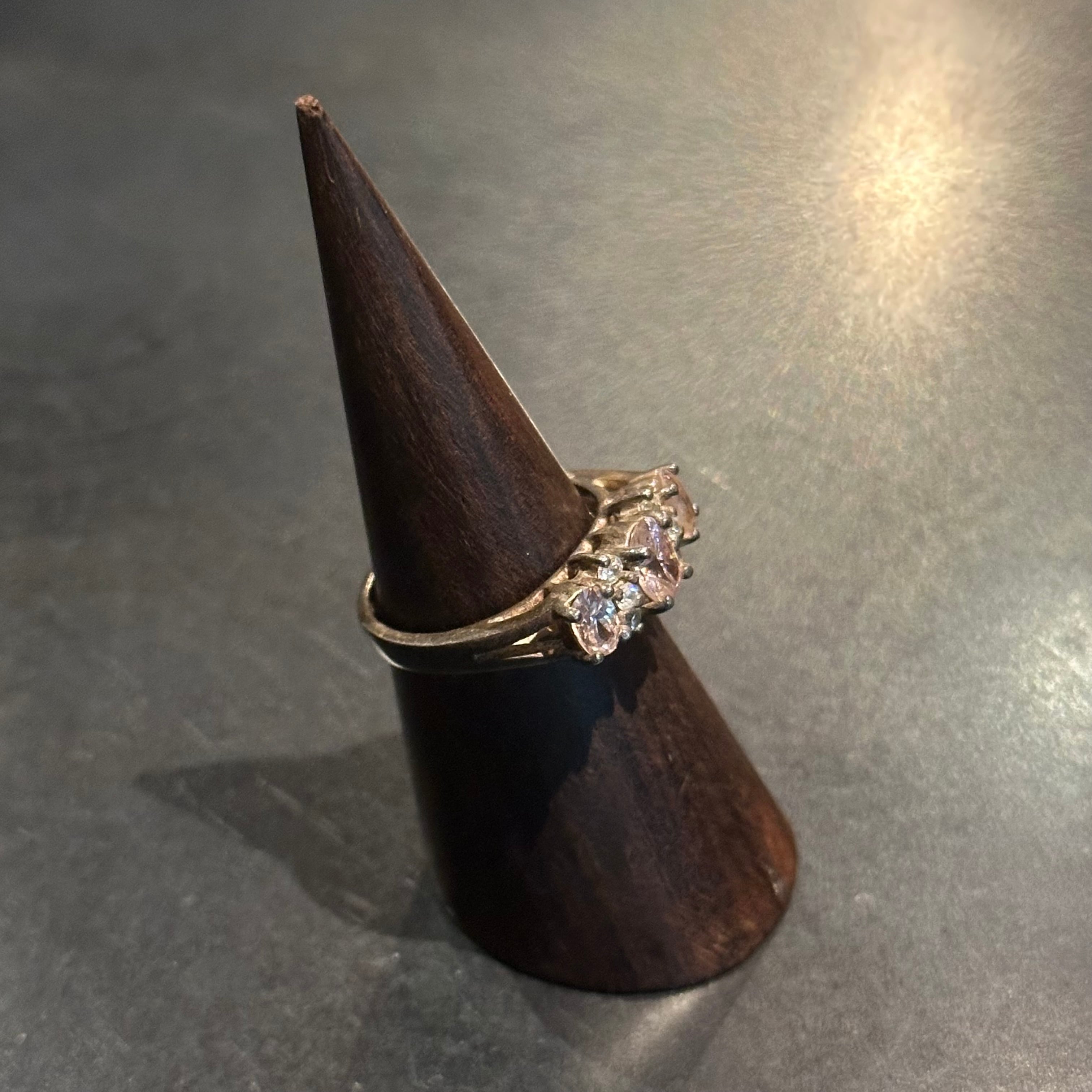 海外で買い付けたピンクストーンデザインのシルバーリングです。