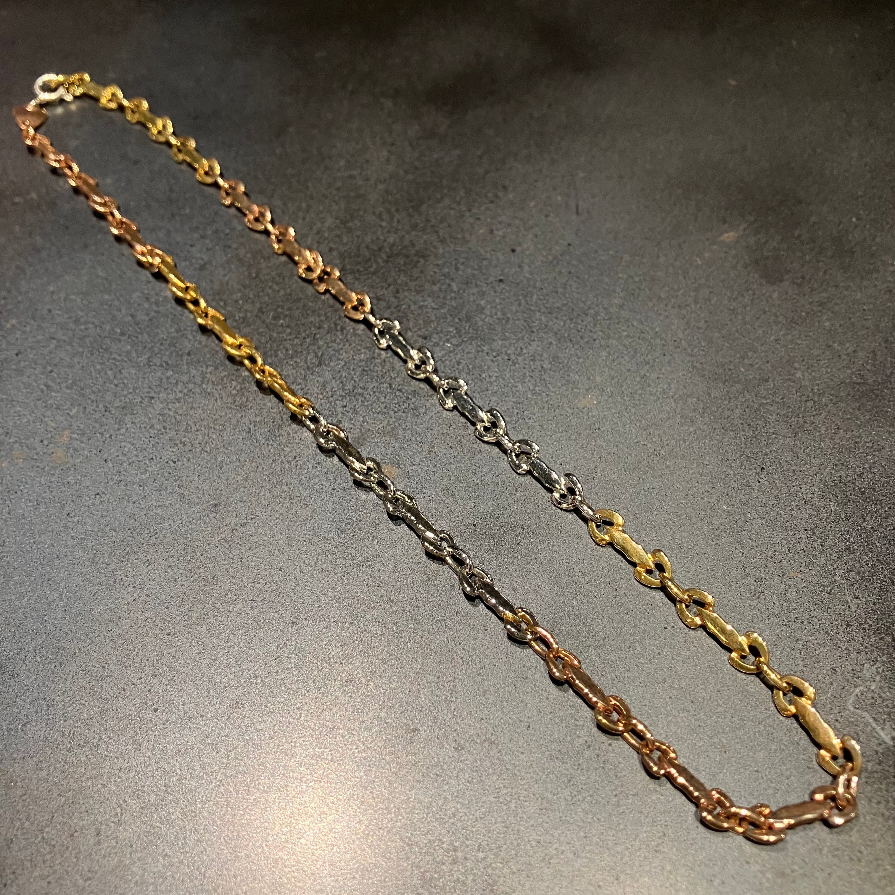 海外で買い付けたゴールド・シルバー・ブロンズの3トーンデザインネックレスです。