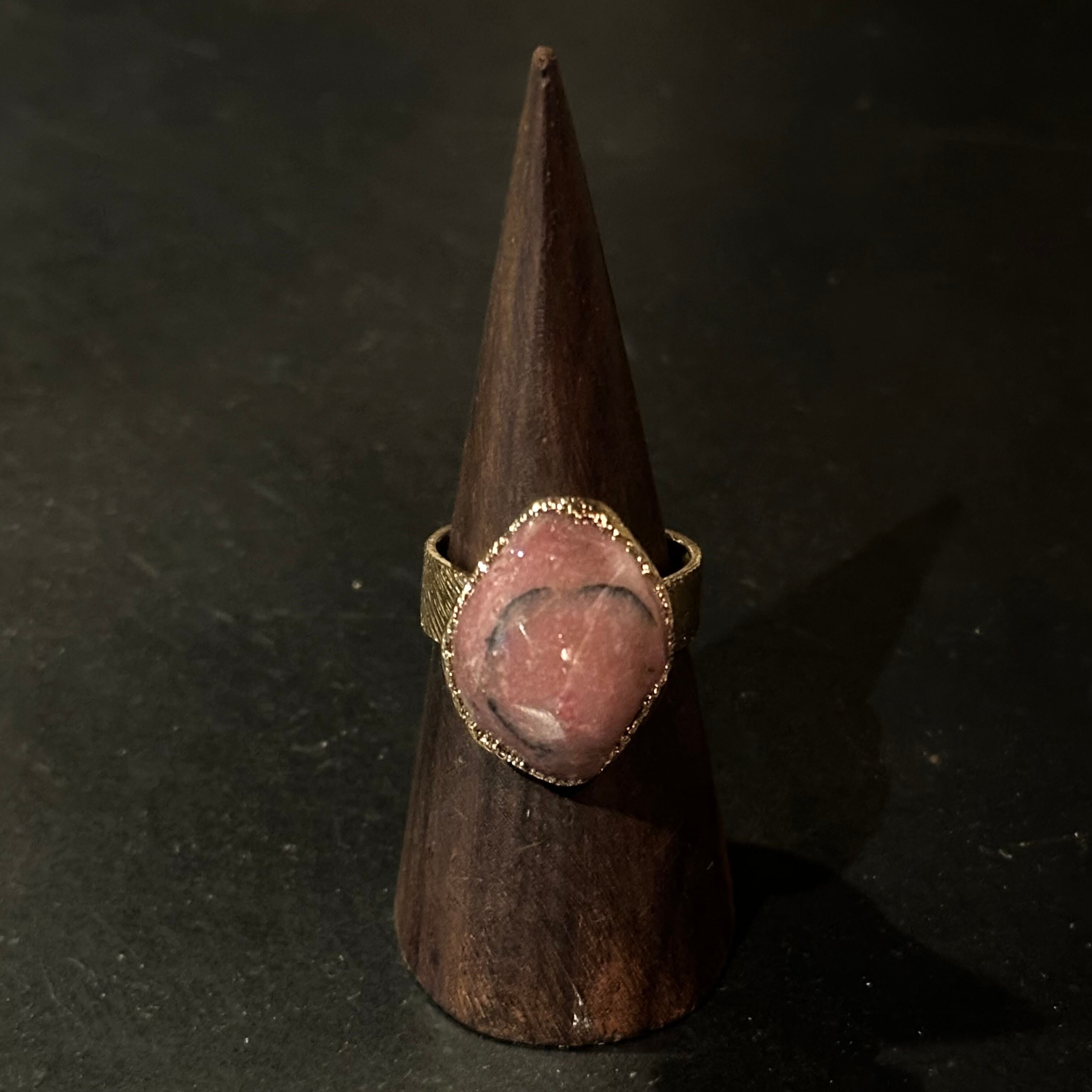 海外で買い付けたピンク石デザインのシルバーリングです。