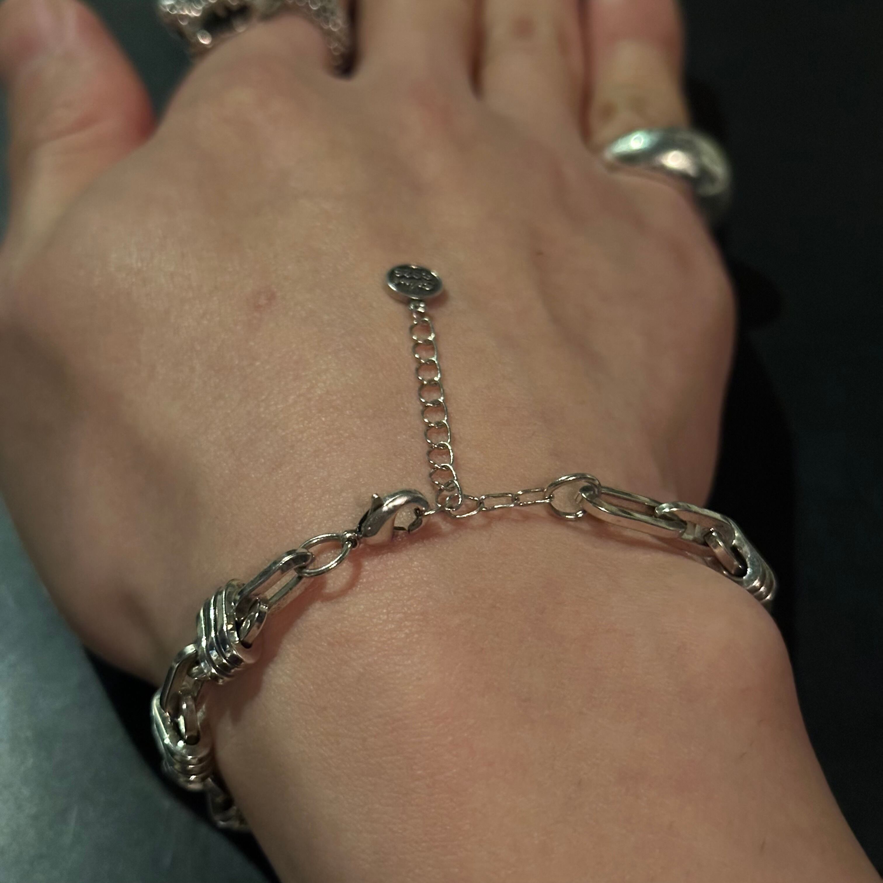 手首周り16㎝でちょうど良いゆとりがある程度です。(チェーン部分で調節可能)