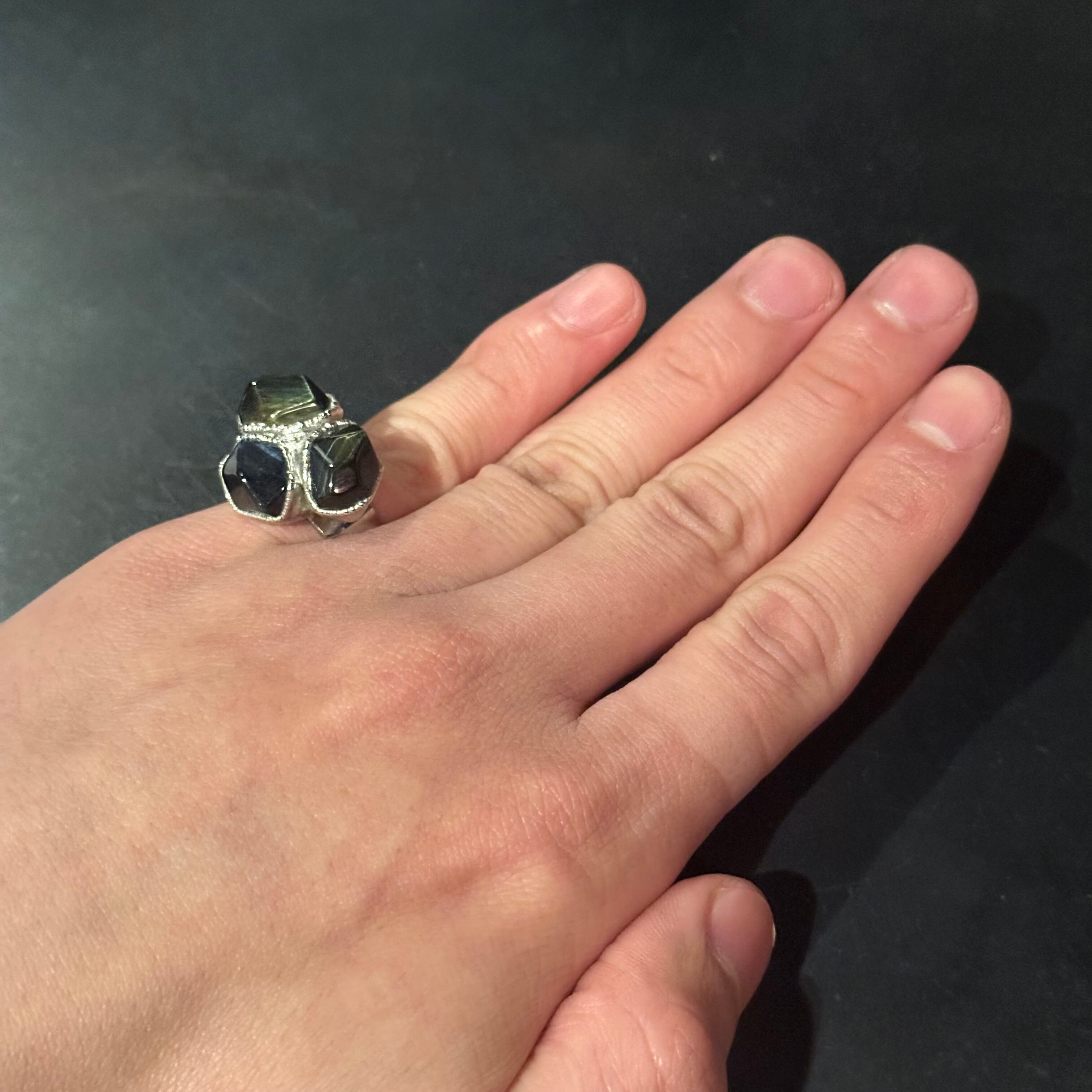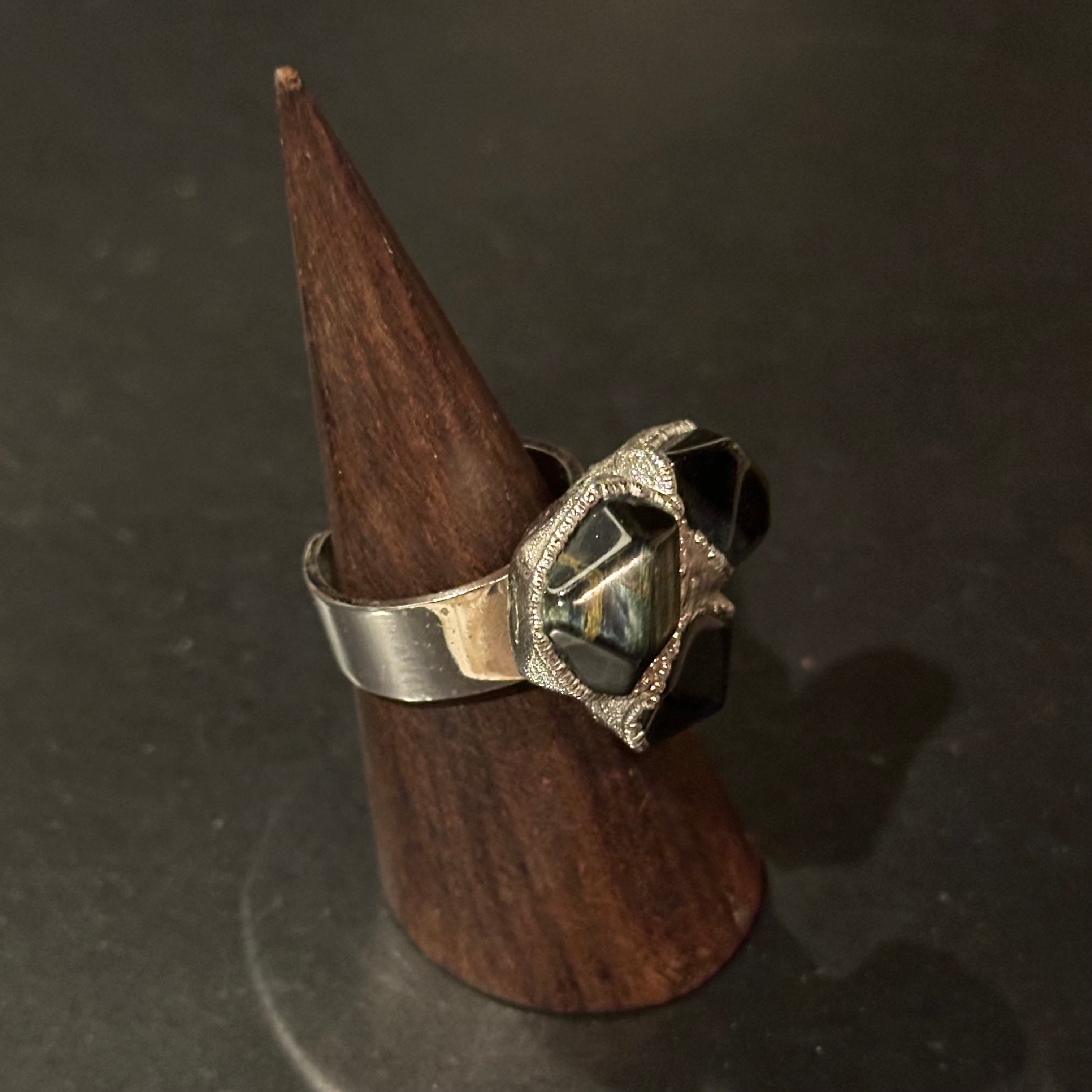 海外で買い付けたオニキスデザインのシルバーリングです。