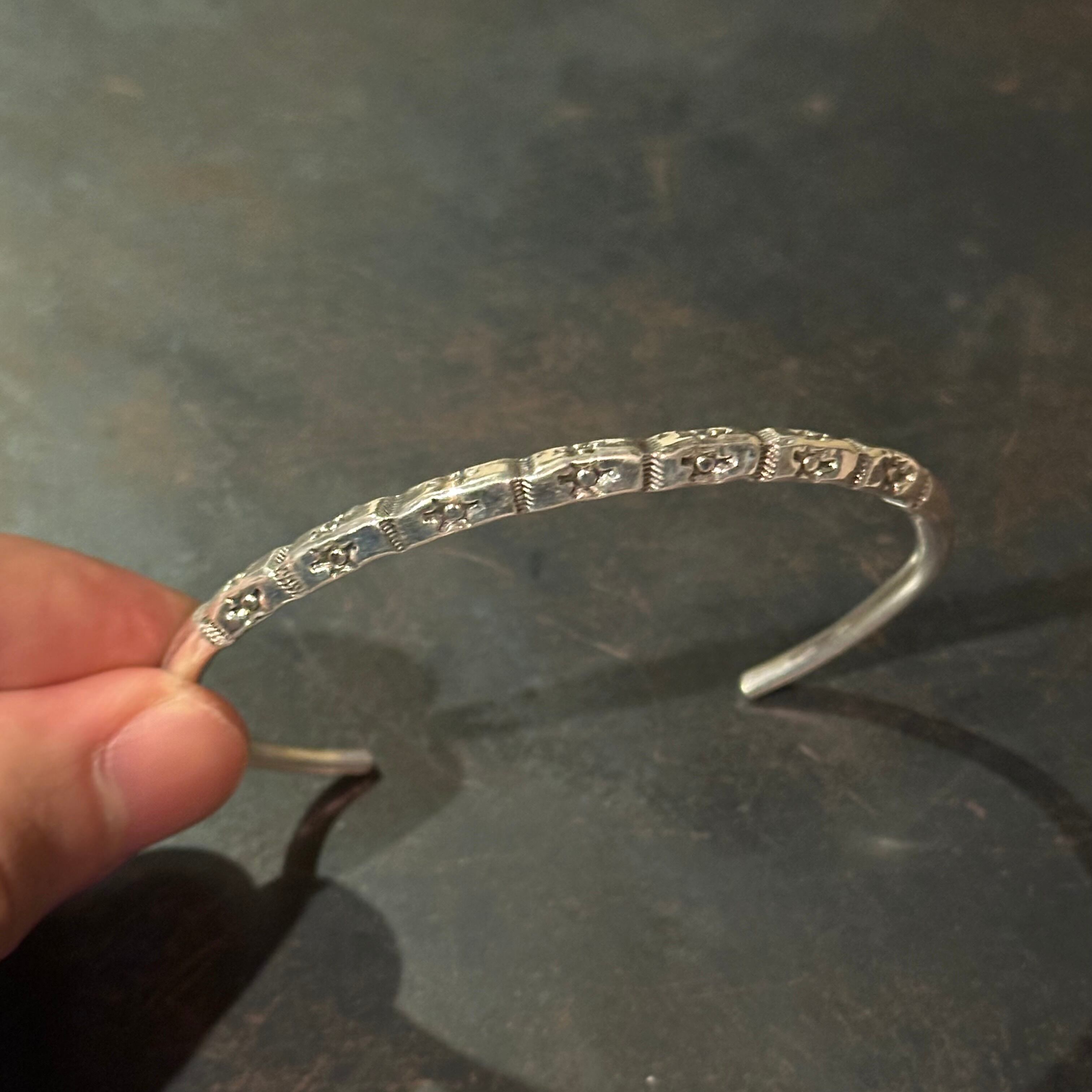 海外で買い付けたネイティブデザインのシルバーバングルです。