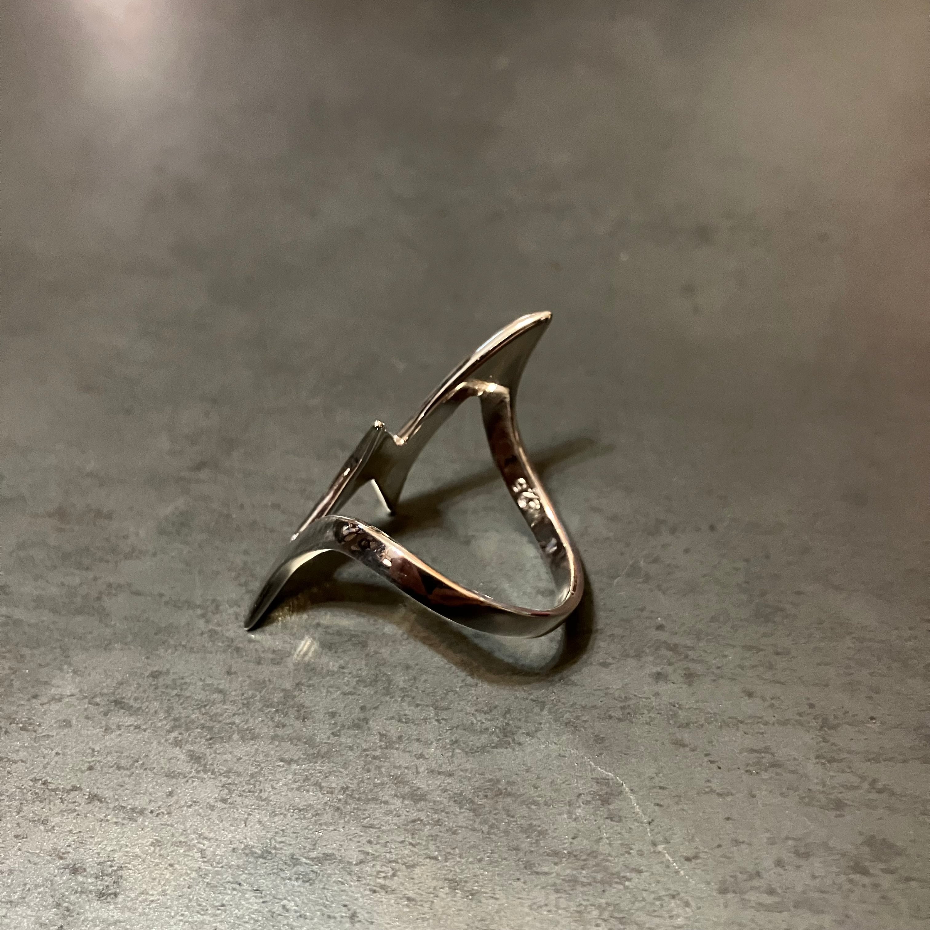 海外で買い付けた稲妻デザインのシルバーリングです。