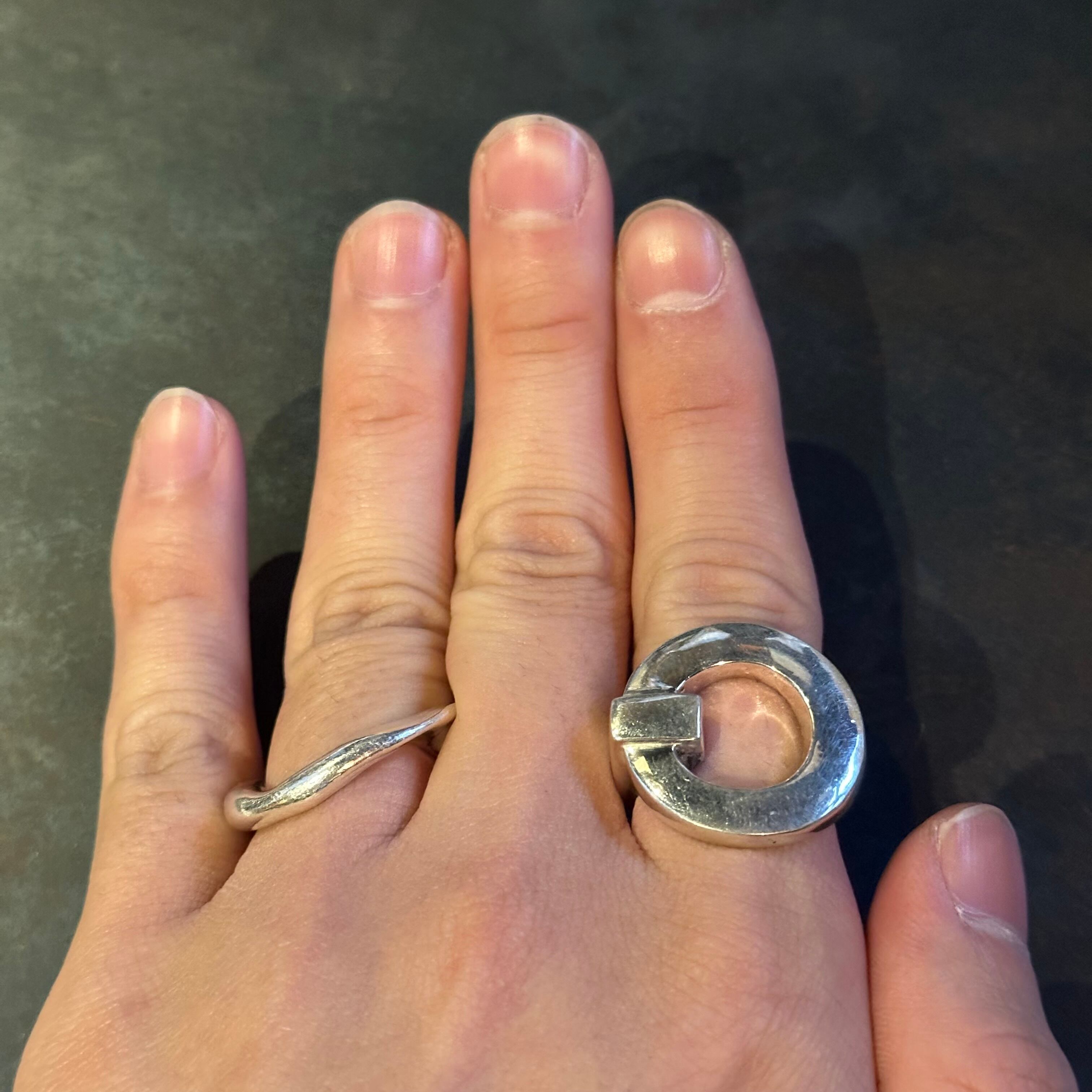 海外で買い付けたサークルデザインのワイドシルバーリングです。