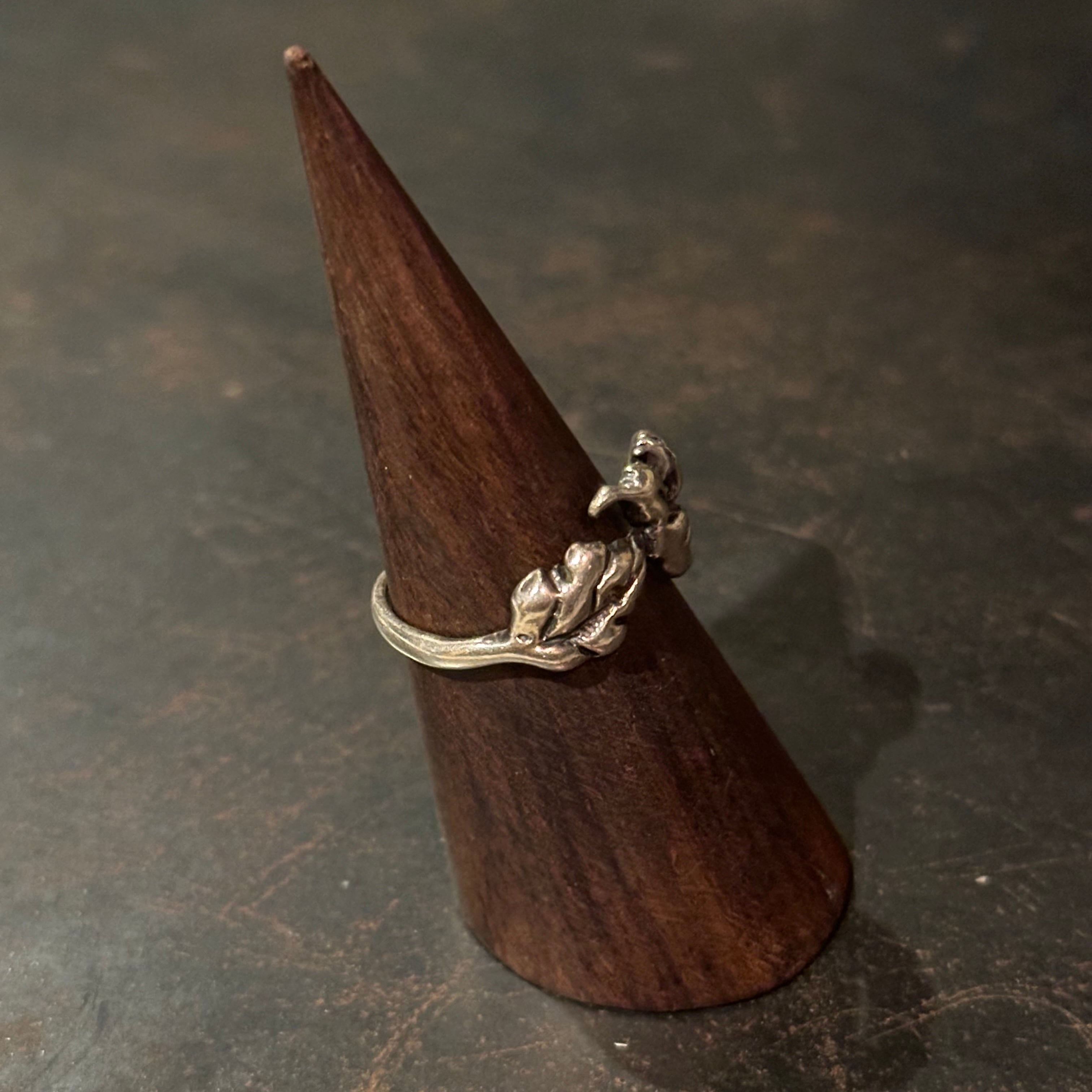 海外で買い付けた葉っぱデザインのシルバーリングです。