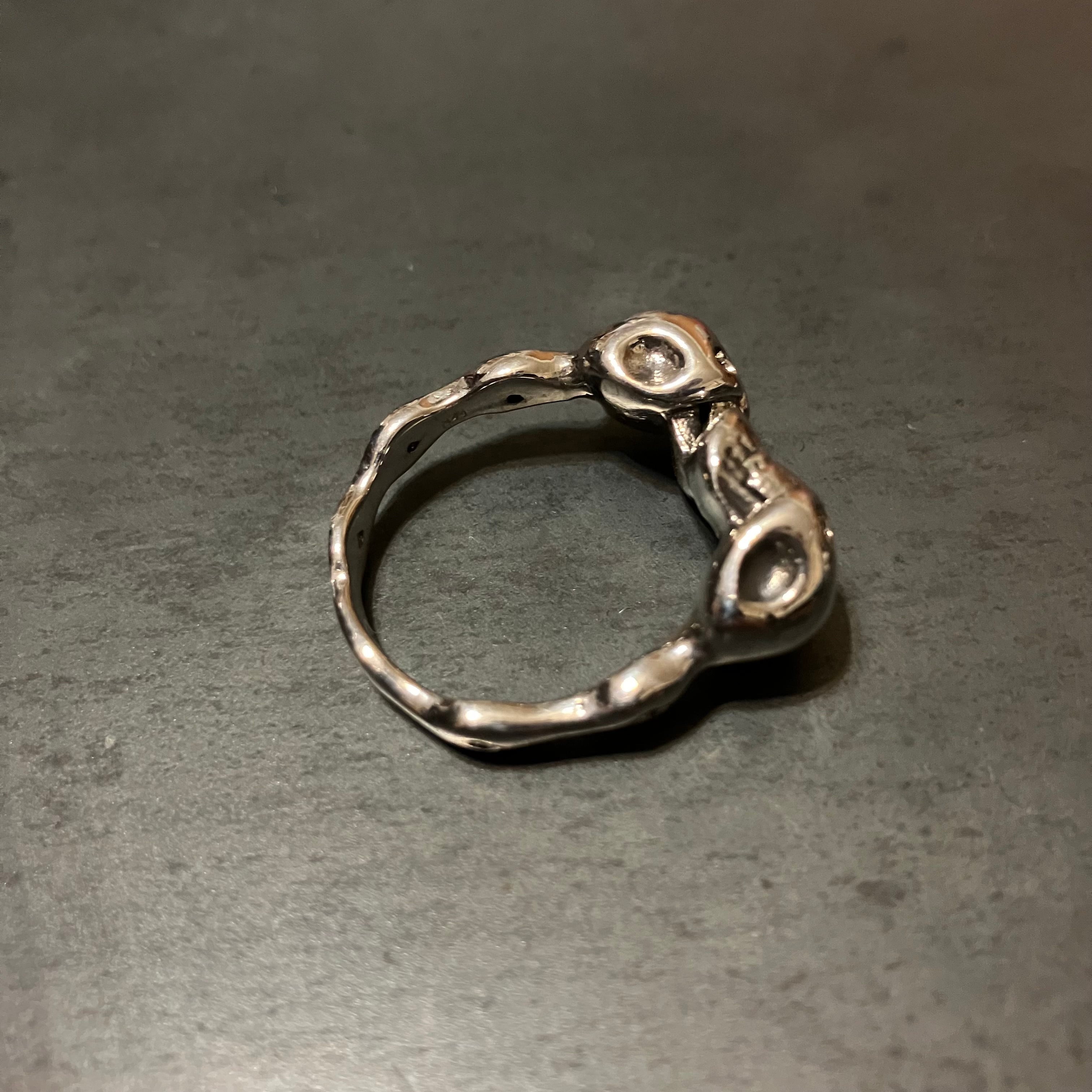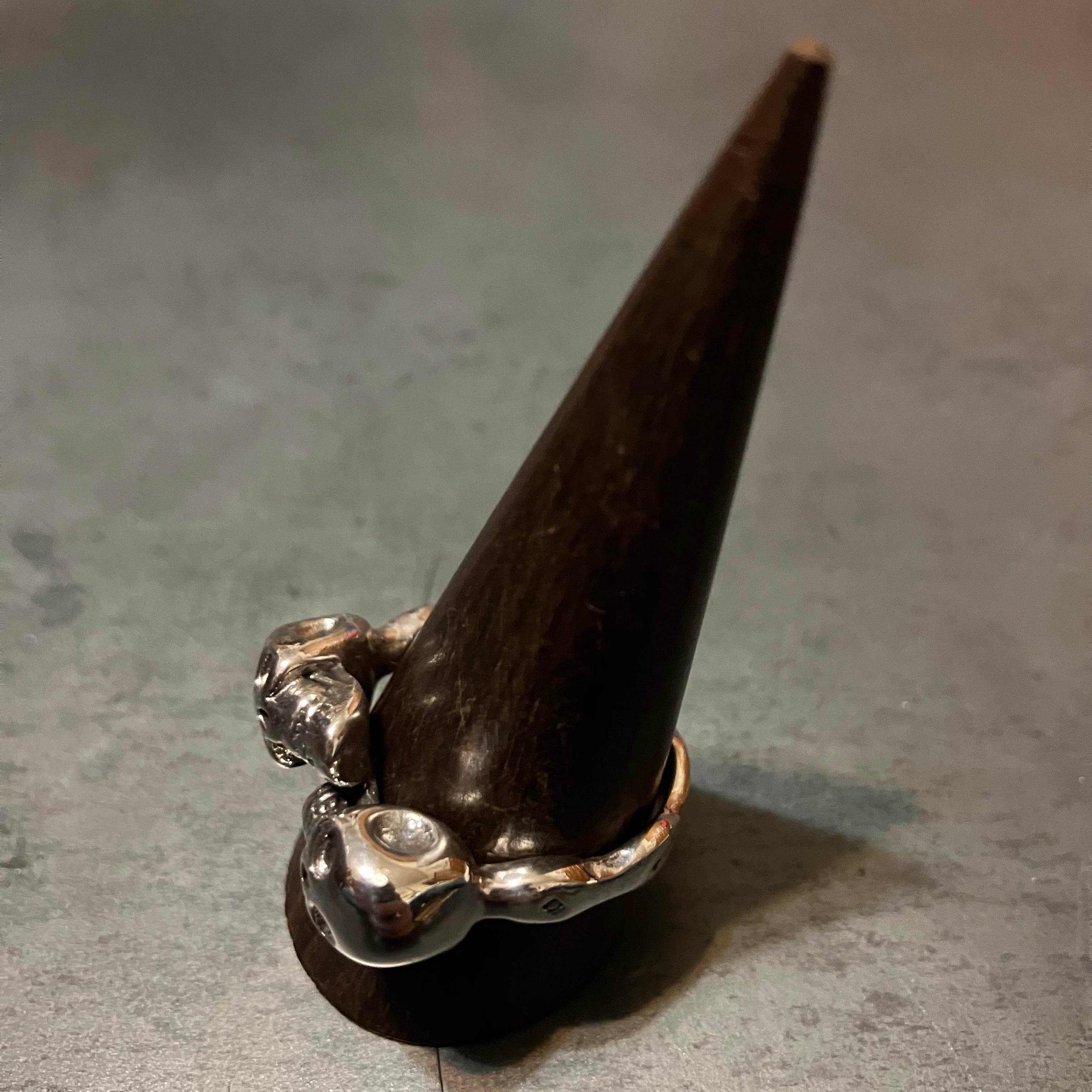 海外で買い付けたダブルスカルデザインのシルバーリングです。
