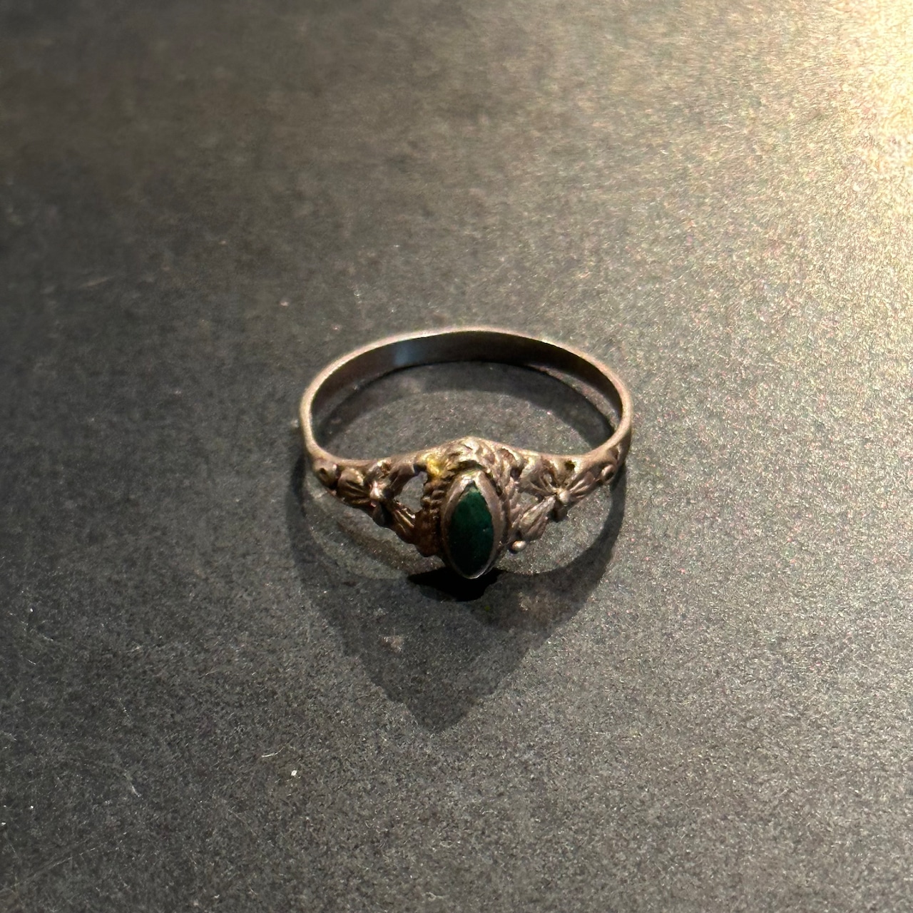 海外で買い付けたグリーンストーンデザインのシルバーリングです。