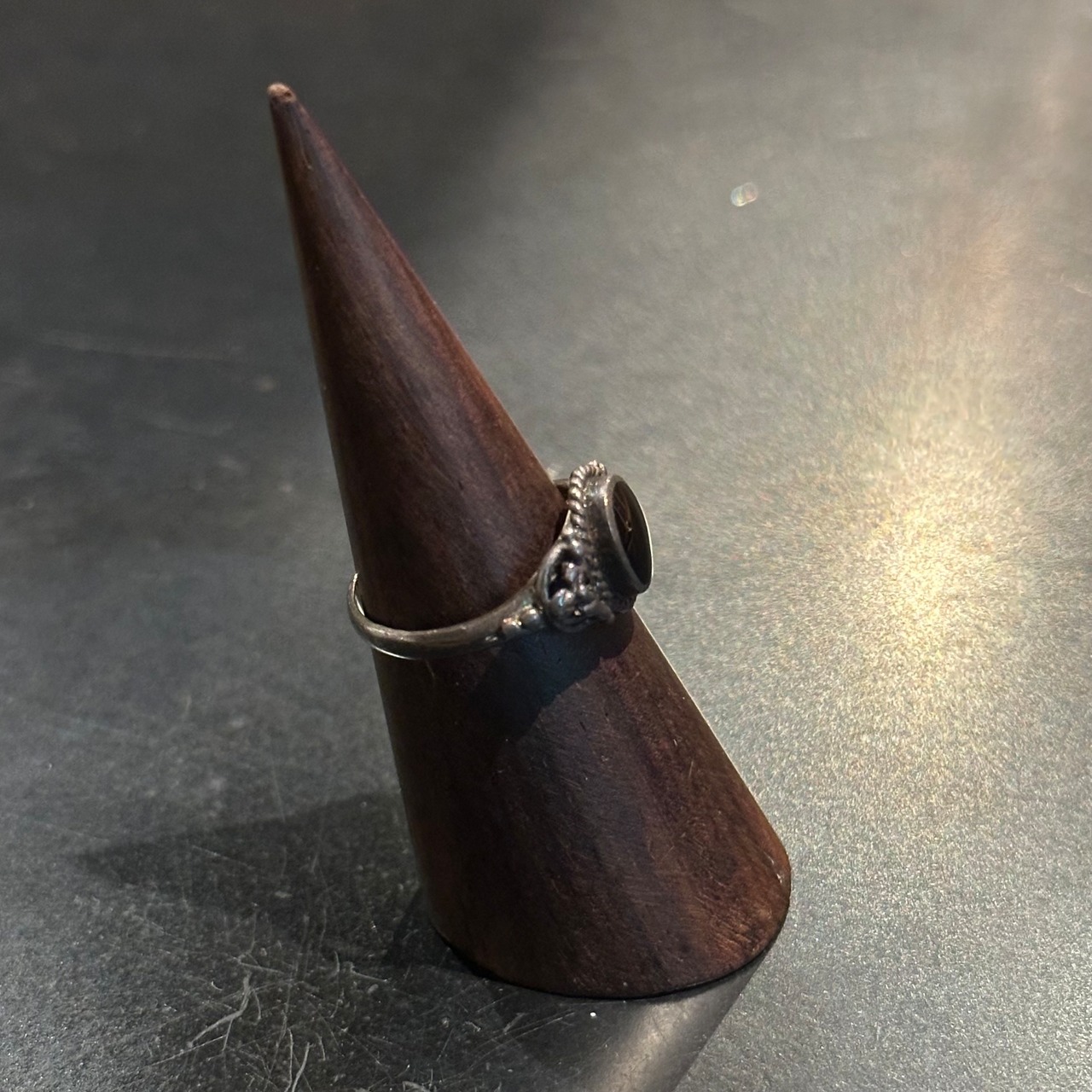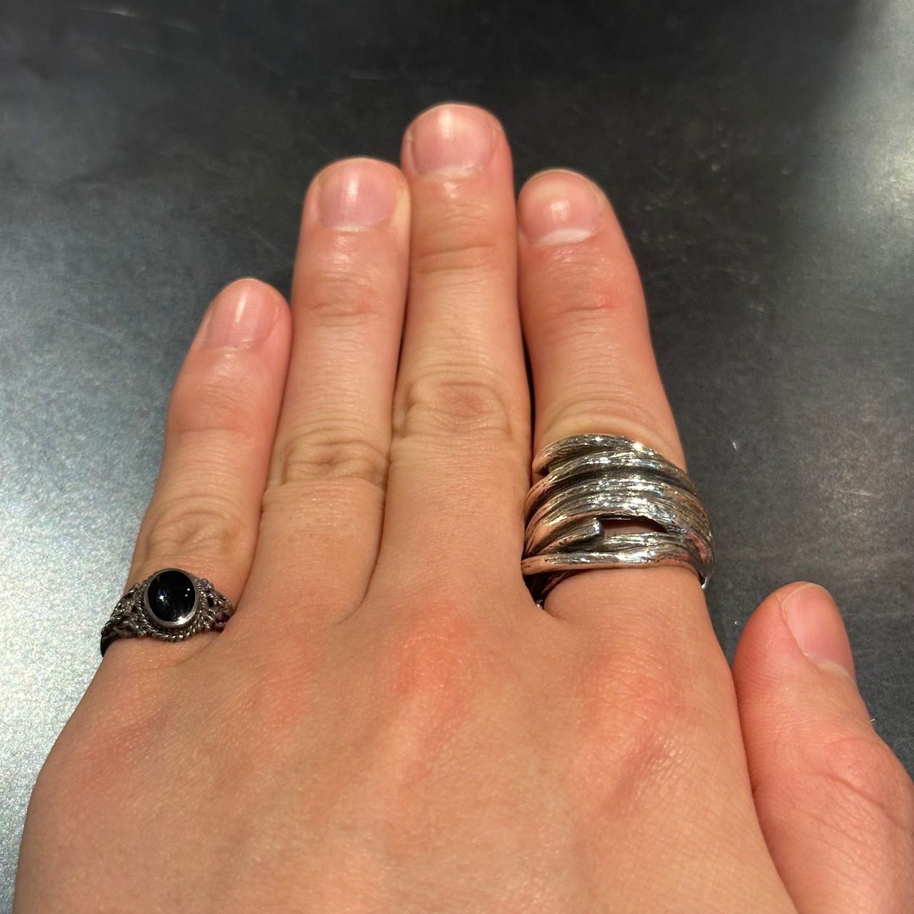 海外で買い付けたオニキスデザインのシルバーリングです。