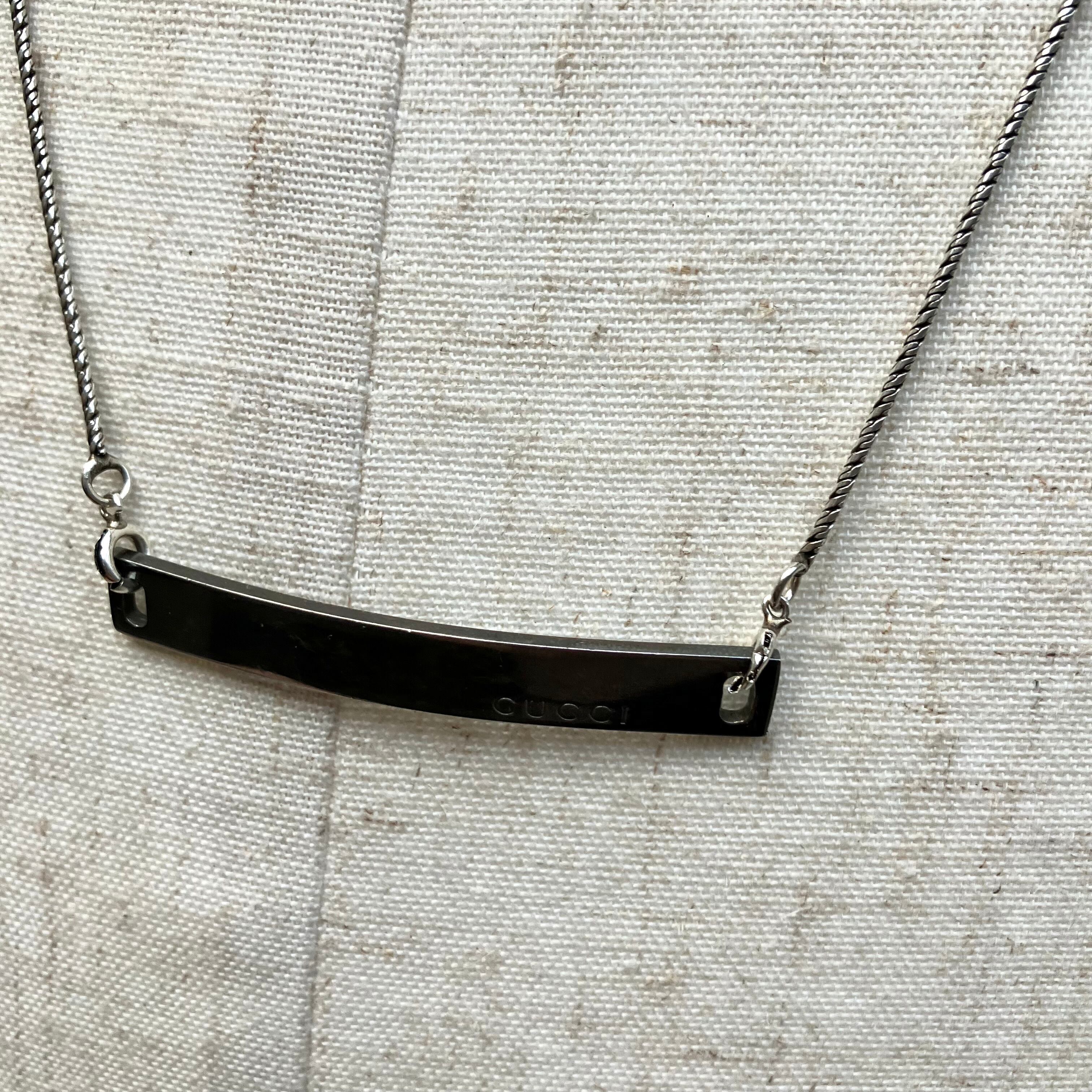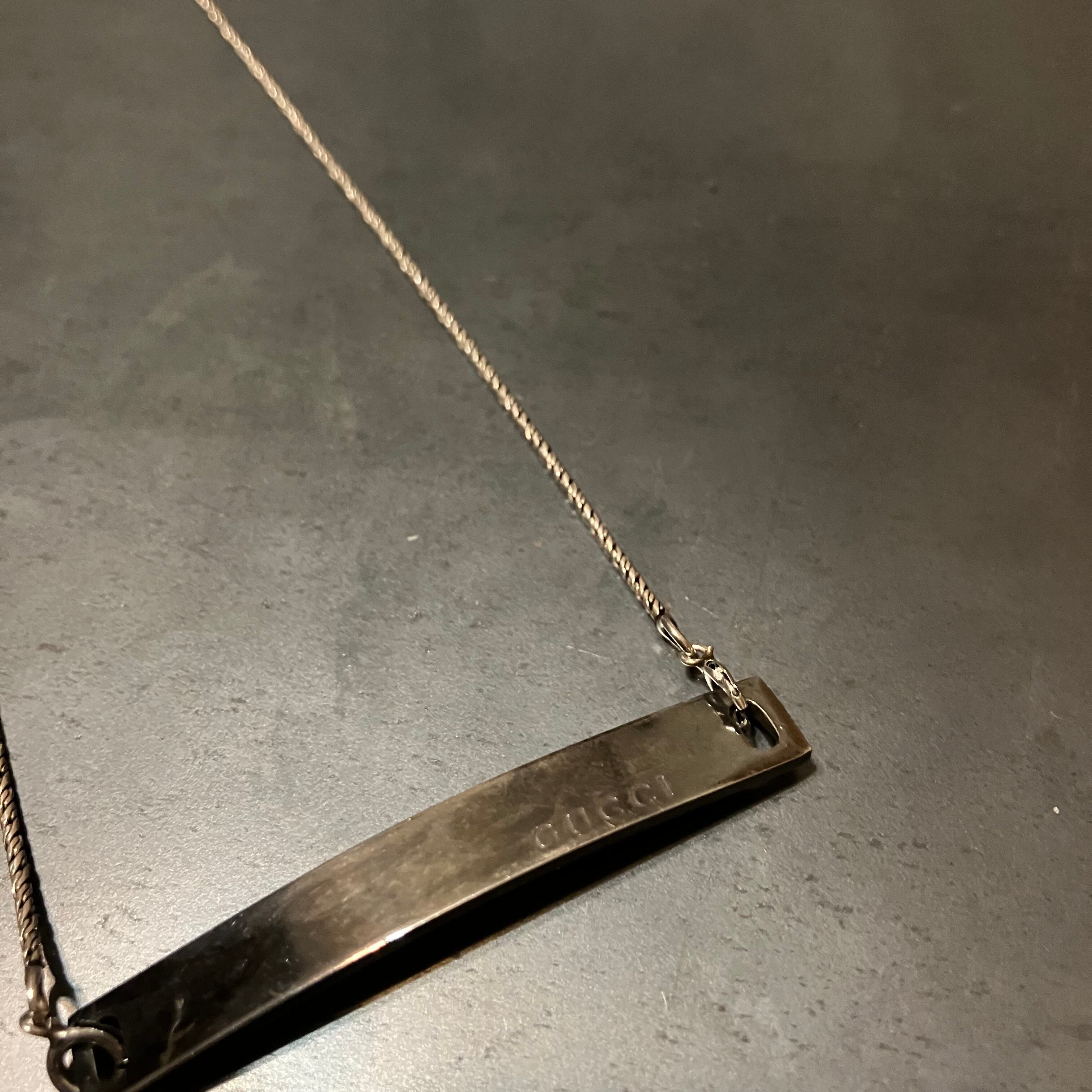 GUCCI LOGO PLATE LONG CHAIN NECKLACE/シルバー/ネックレス/SILVER