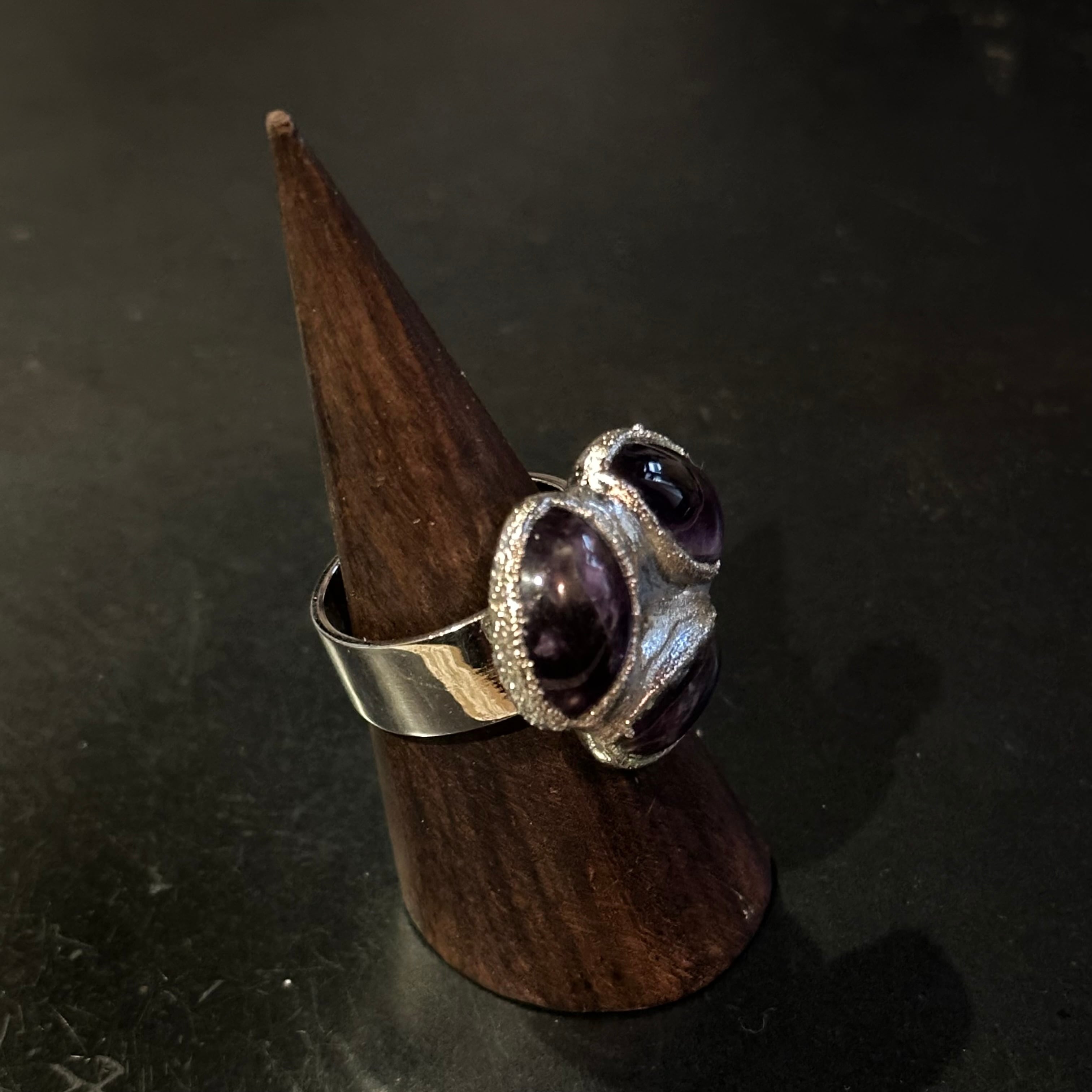 海外で買い付けたパープルストーンデザインのシルバーリングです。
