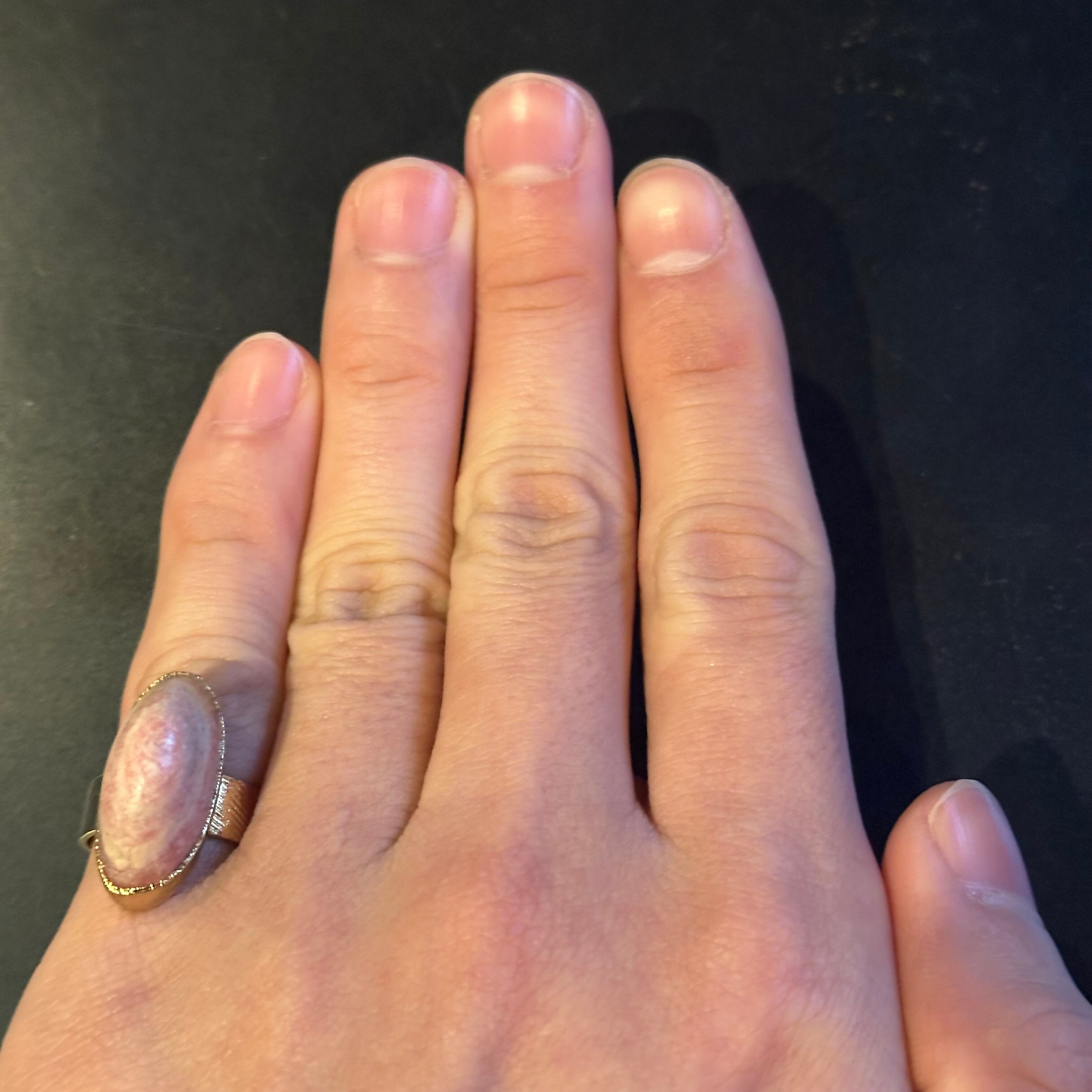 海外で買い付けたロードクロサイト石デザインのシルバーリングです。