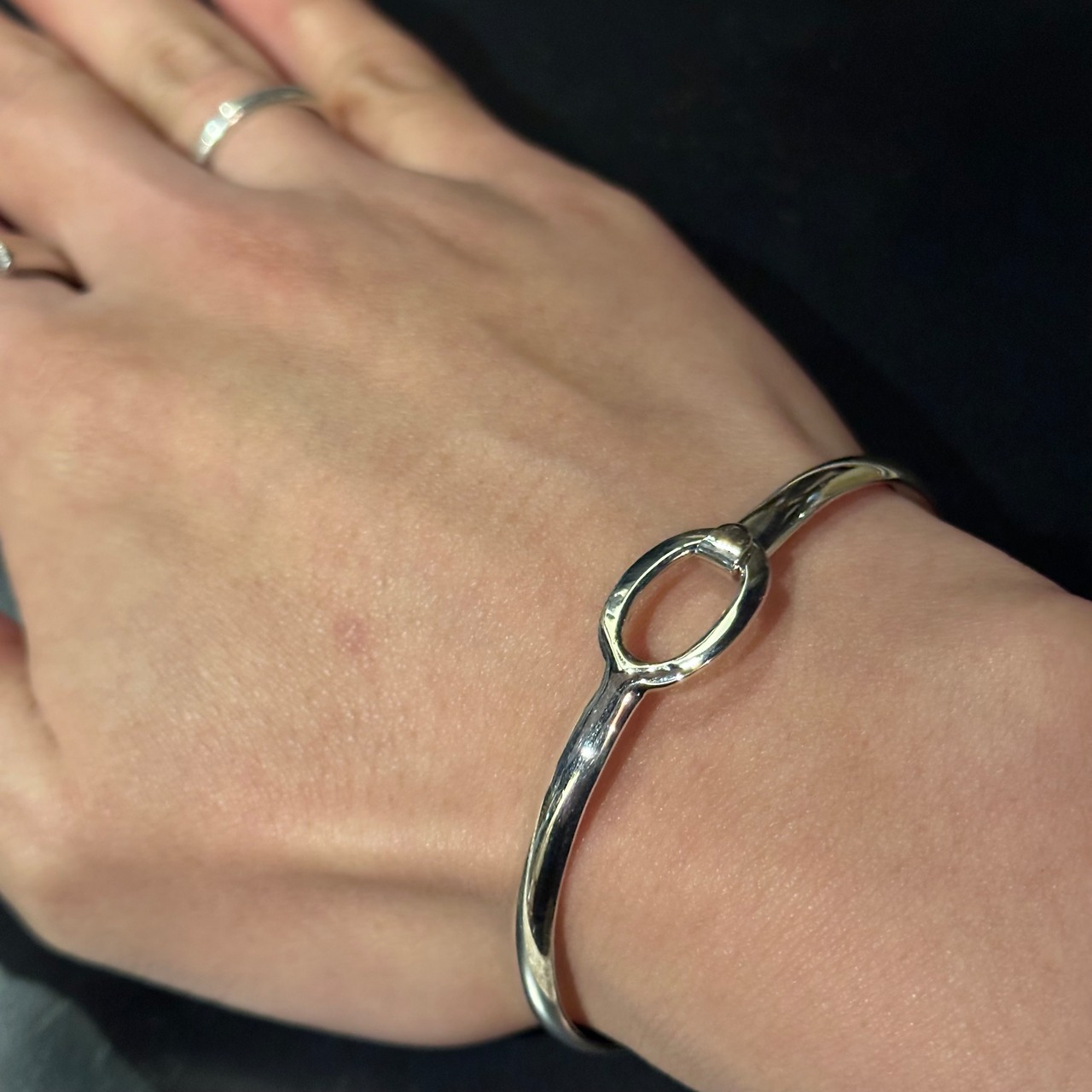 海外で買い付けたアンカーフックデザインのシルバーバングルです。