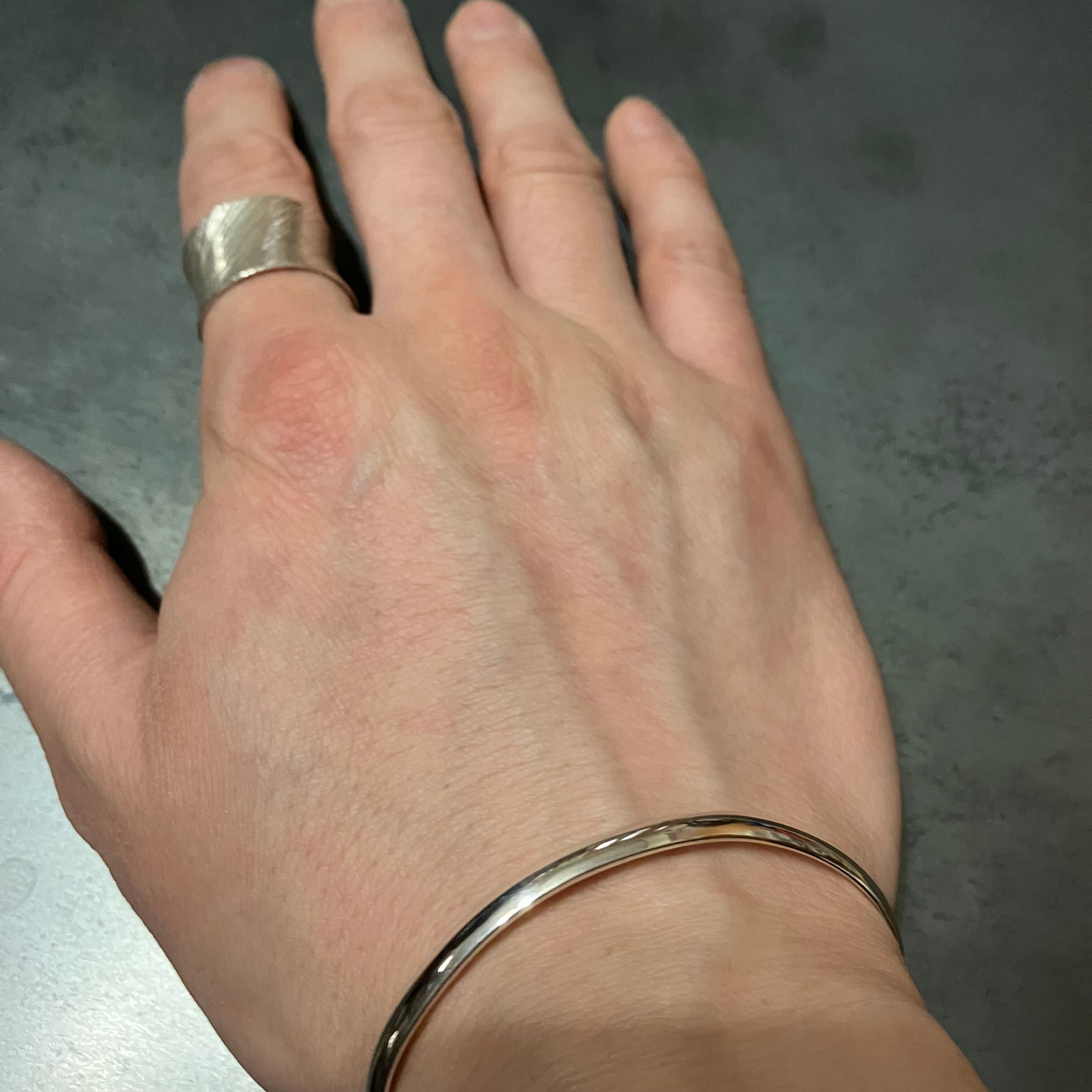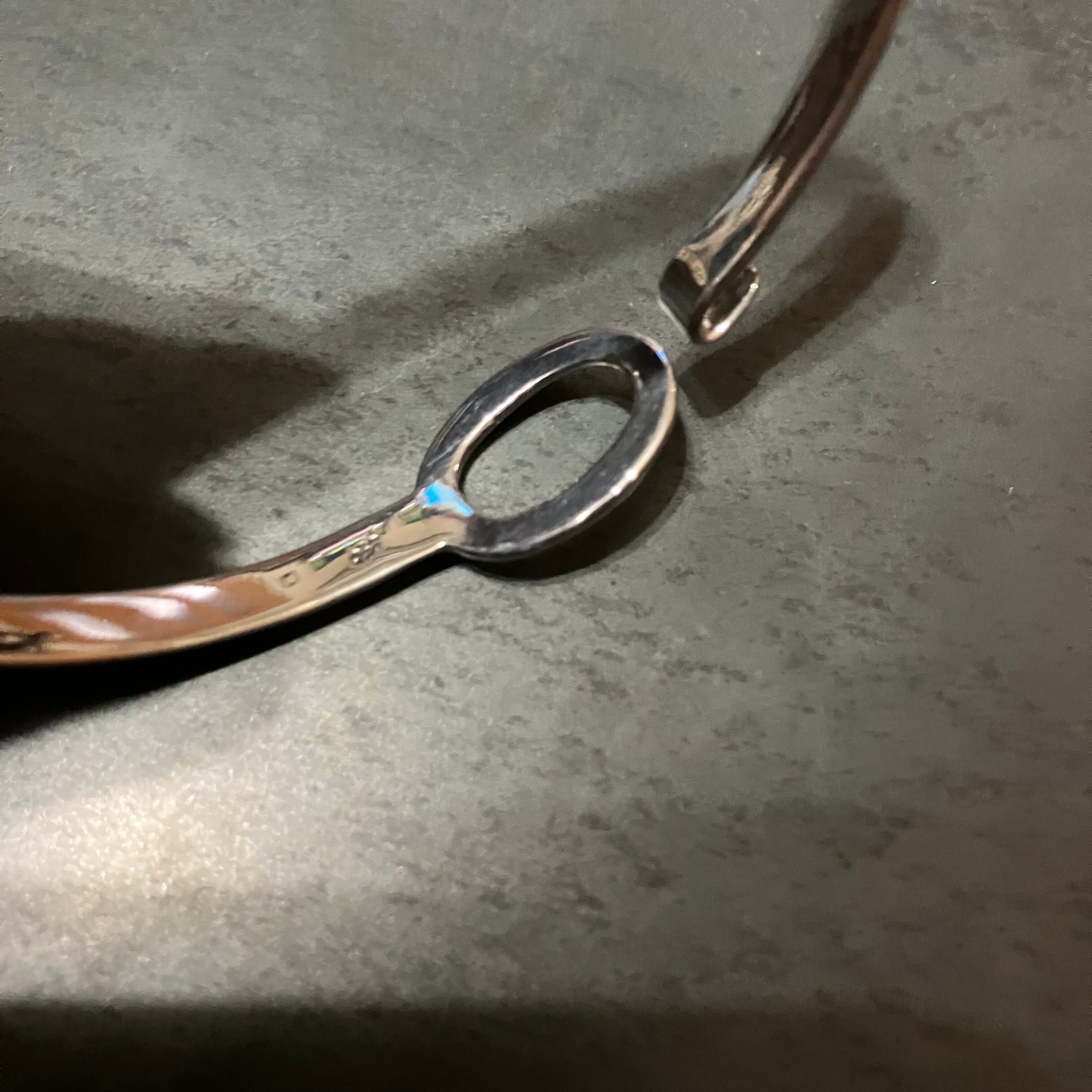 フックで輪にかける珍しいタイプのバングルでございます。