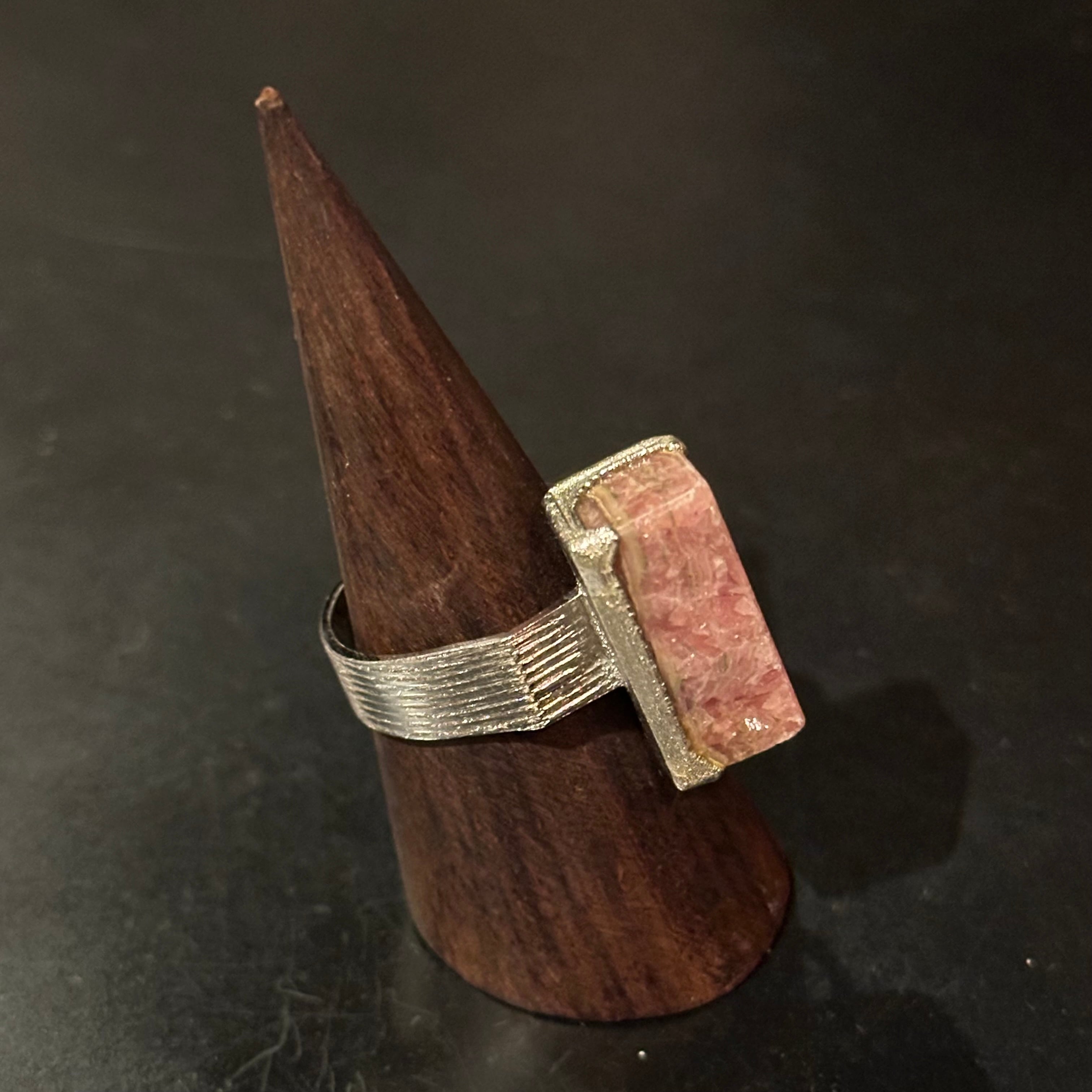 海外で買い付けたピンクストーンデザインのシルバーリングです。