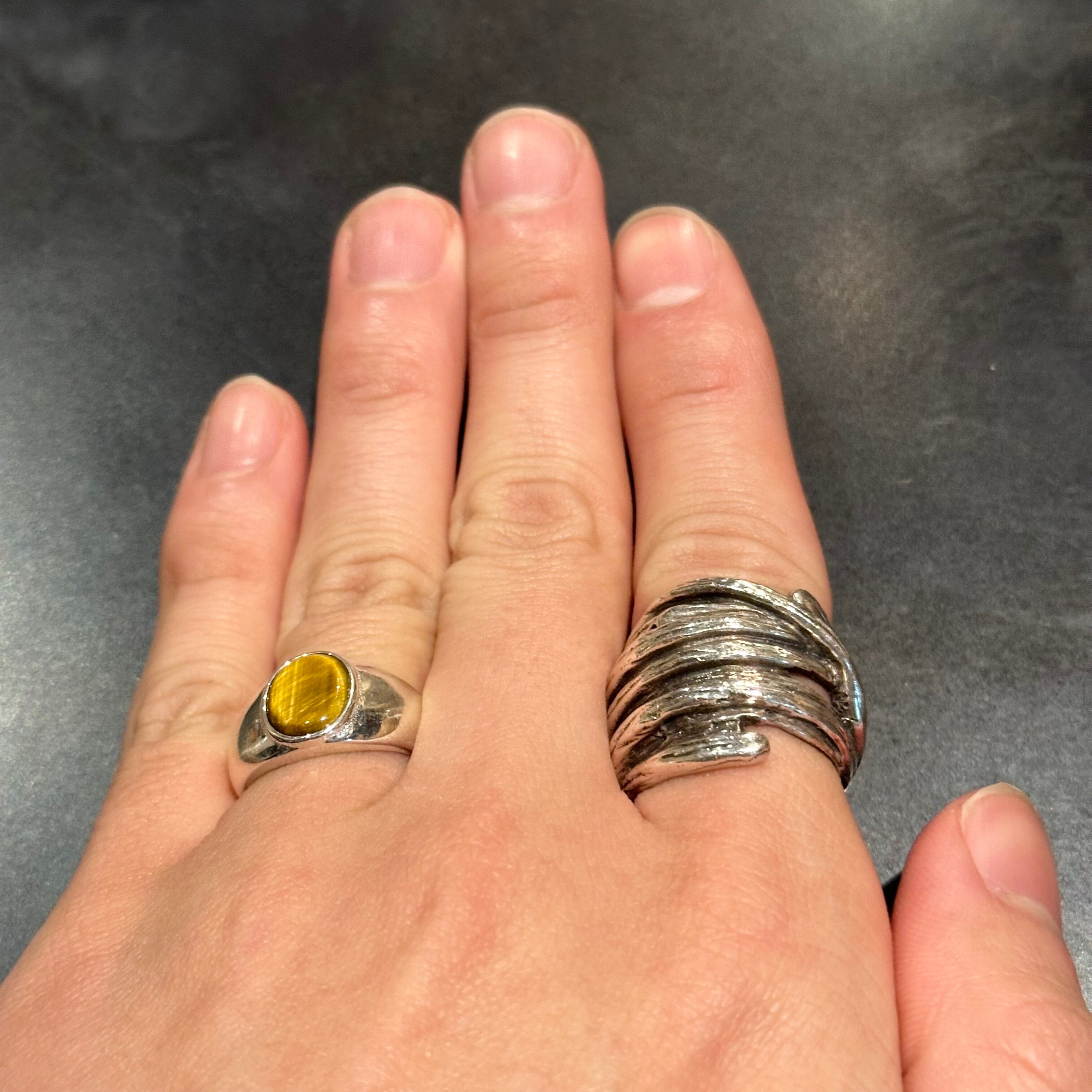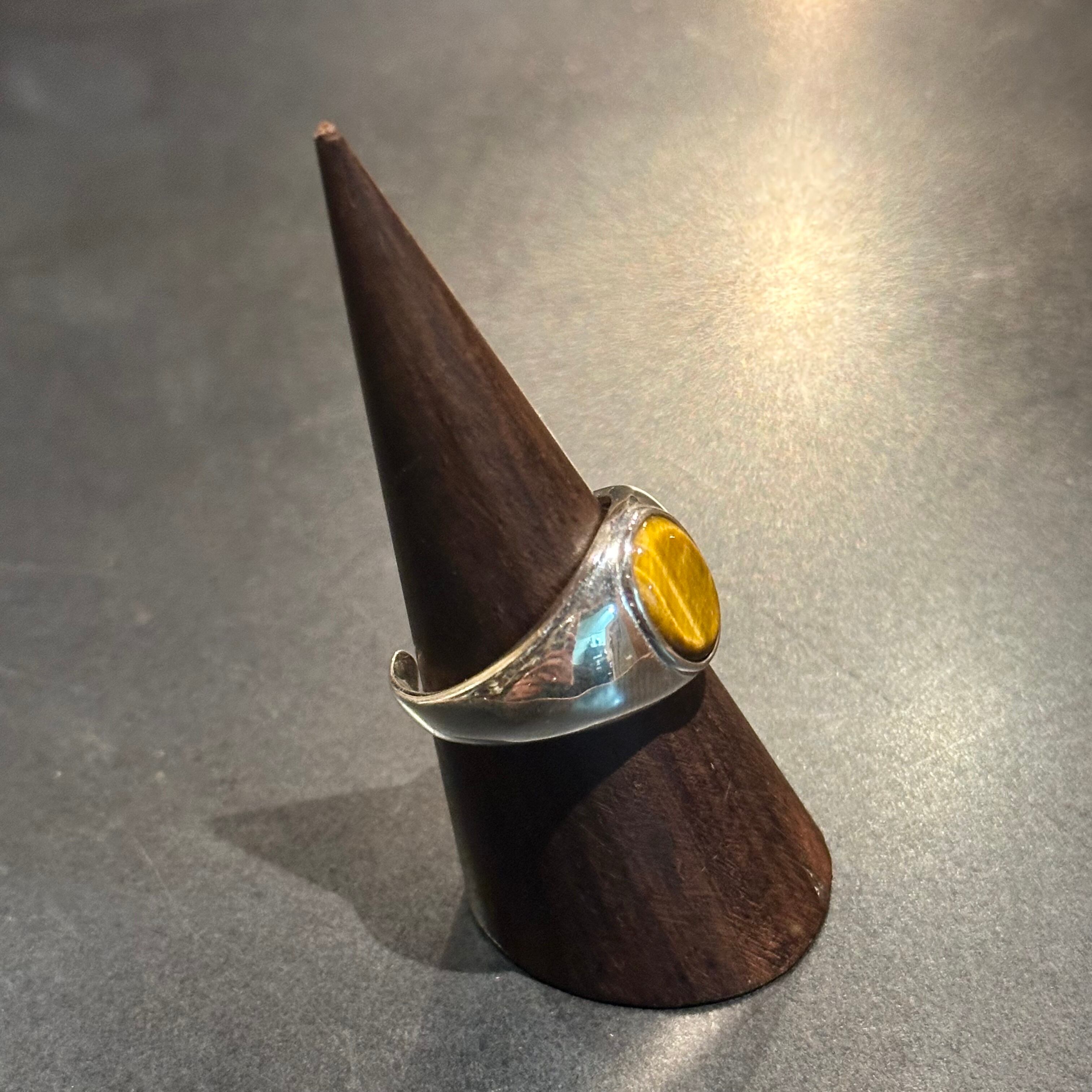 海外で買い付けたタイガーアイデザインのシルバーリングです。