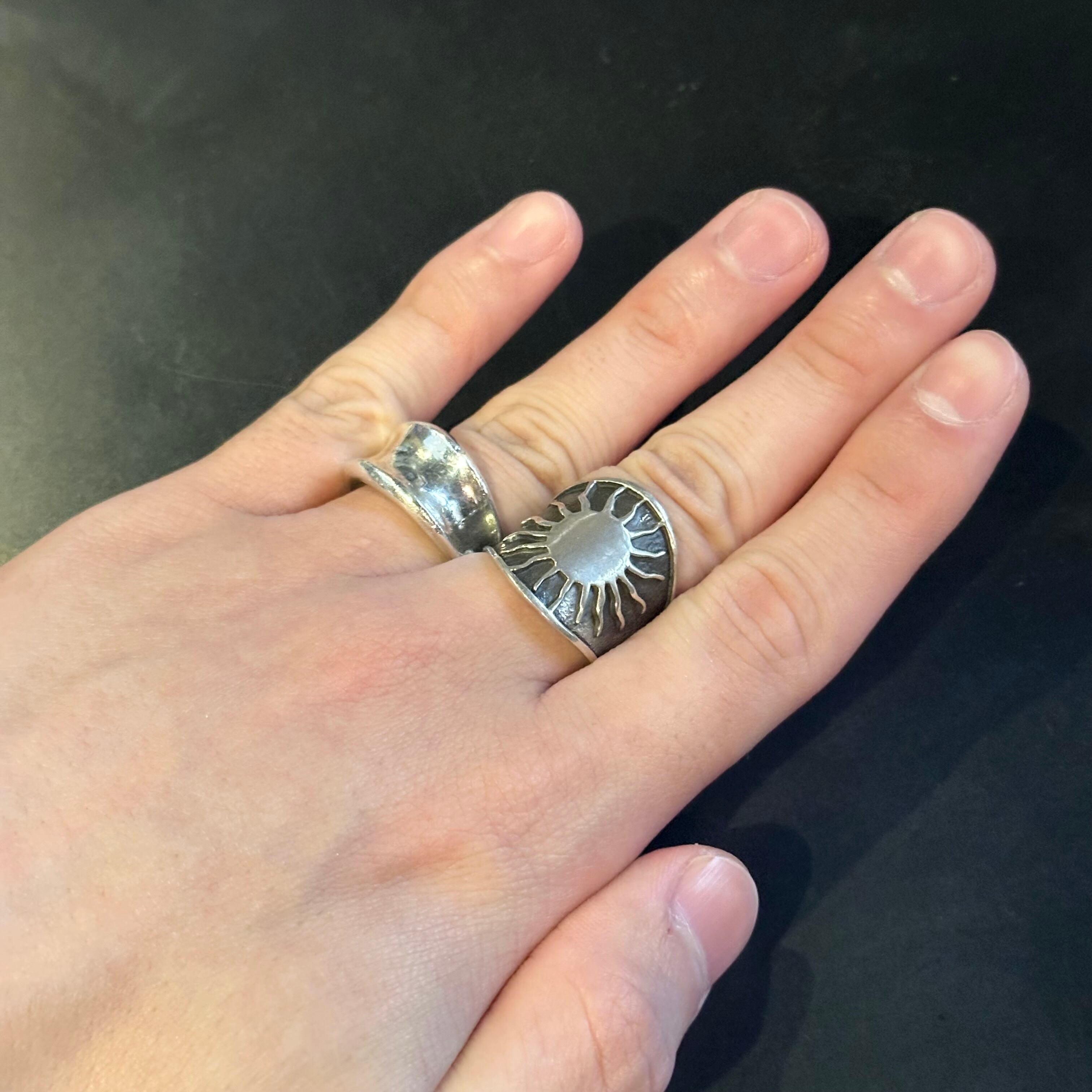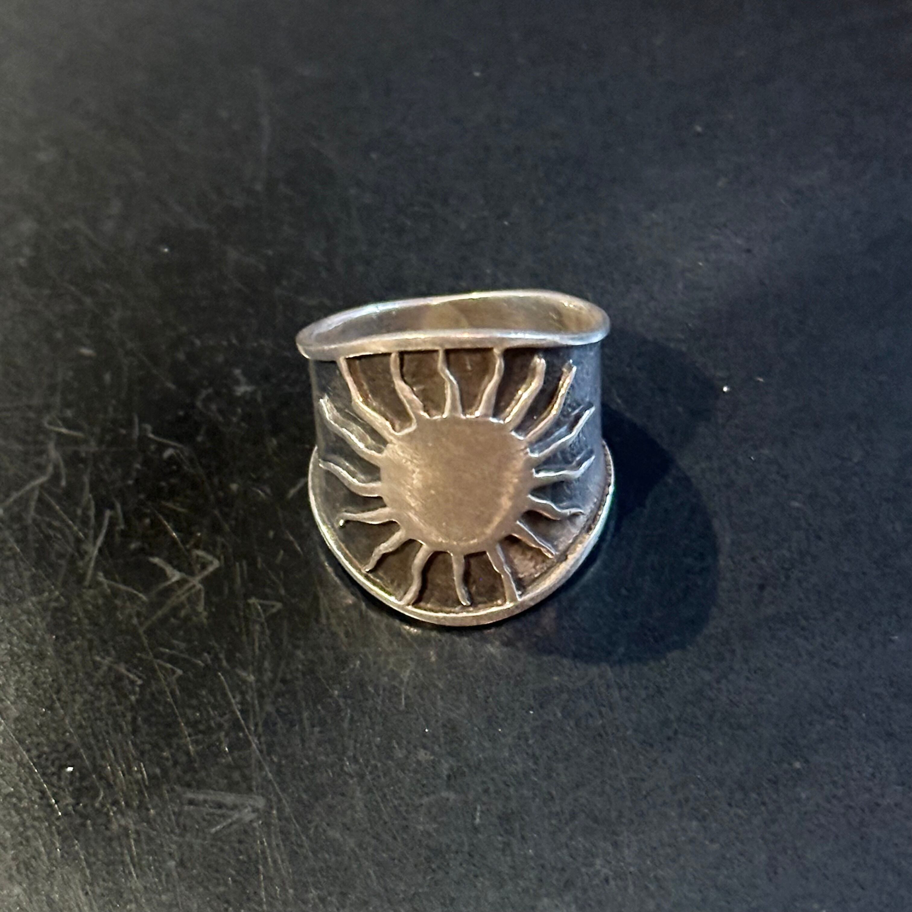 海外で買い付けた太陽モチーフデザインのシルバーリングです。