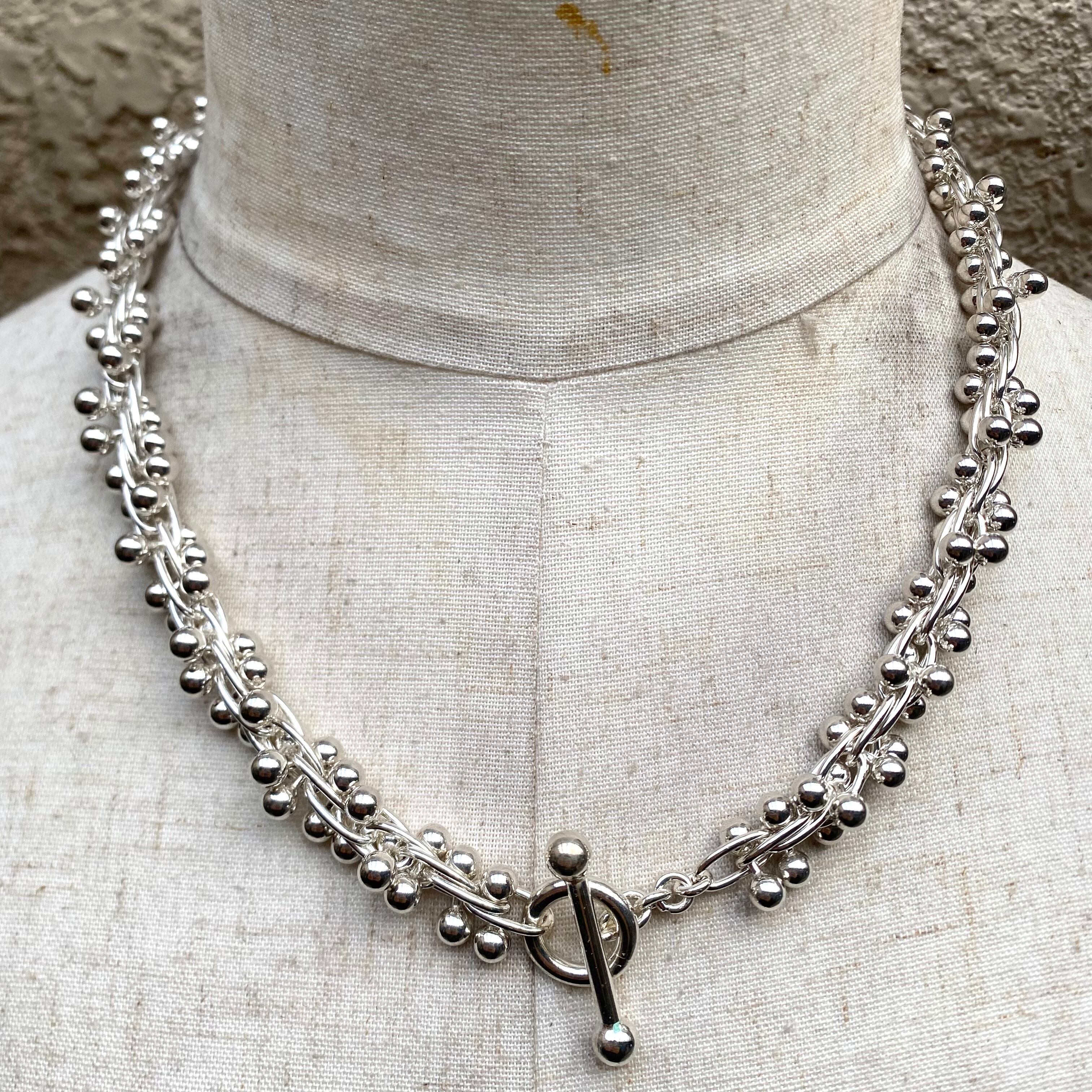 極太ですごい数のシルバーパールが用いられた豪華なネックレスです。