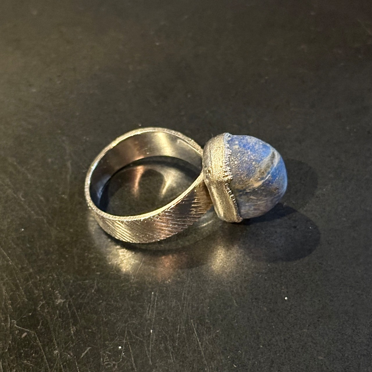 海外で買い付けたブルーストーンデザインのシルバーリングです。