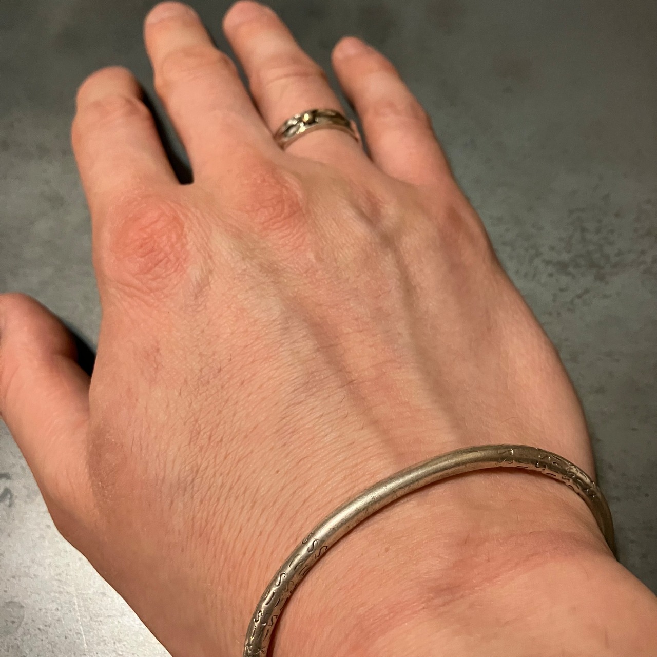 海外で買い付けたインディアンジュエリーのエスニックシルバーバングルです。