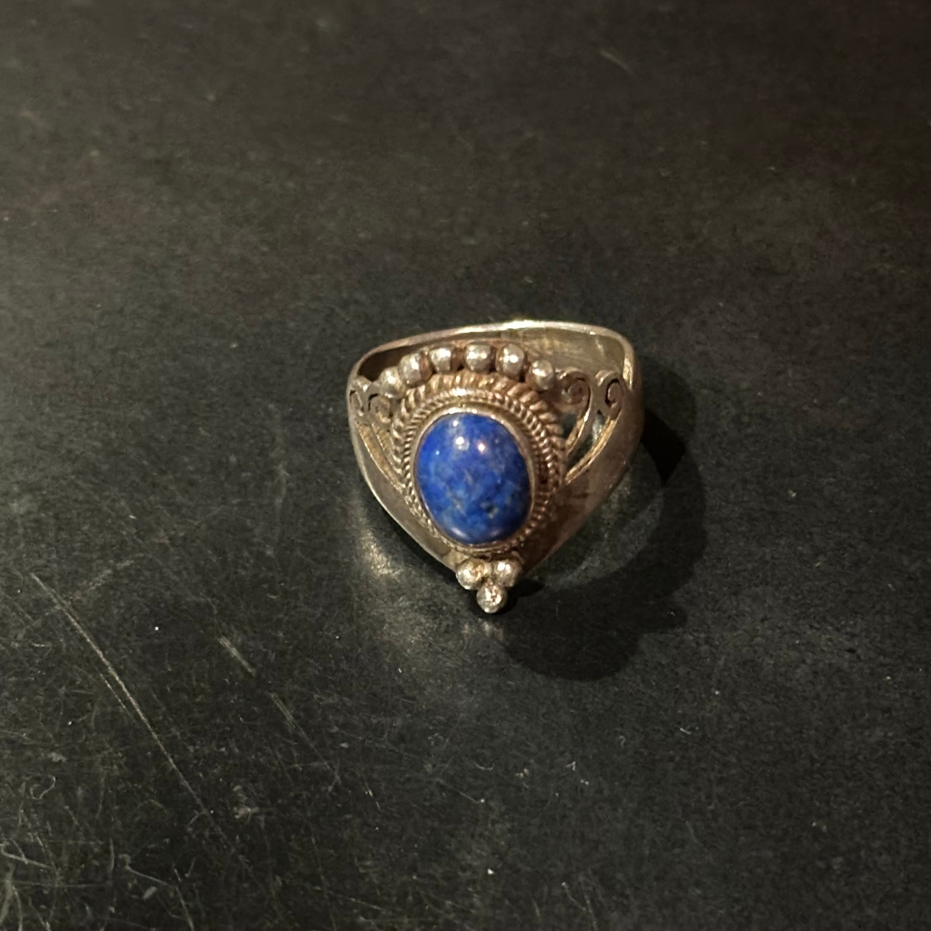 海外で買い付けたブルーストーンデザインのシルバーリングです。